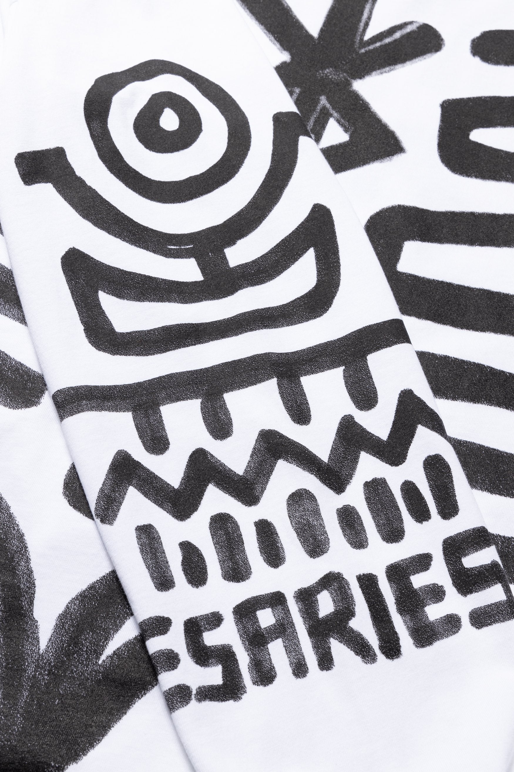Unisex long sleeve t-shirt made from 100% cotton jersey. Screen-printed front back and sleeves with a bodypaint design.