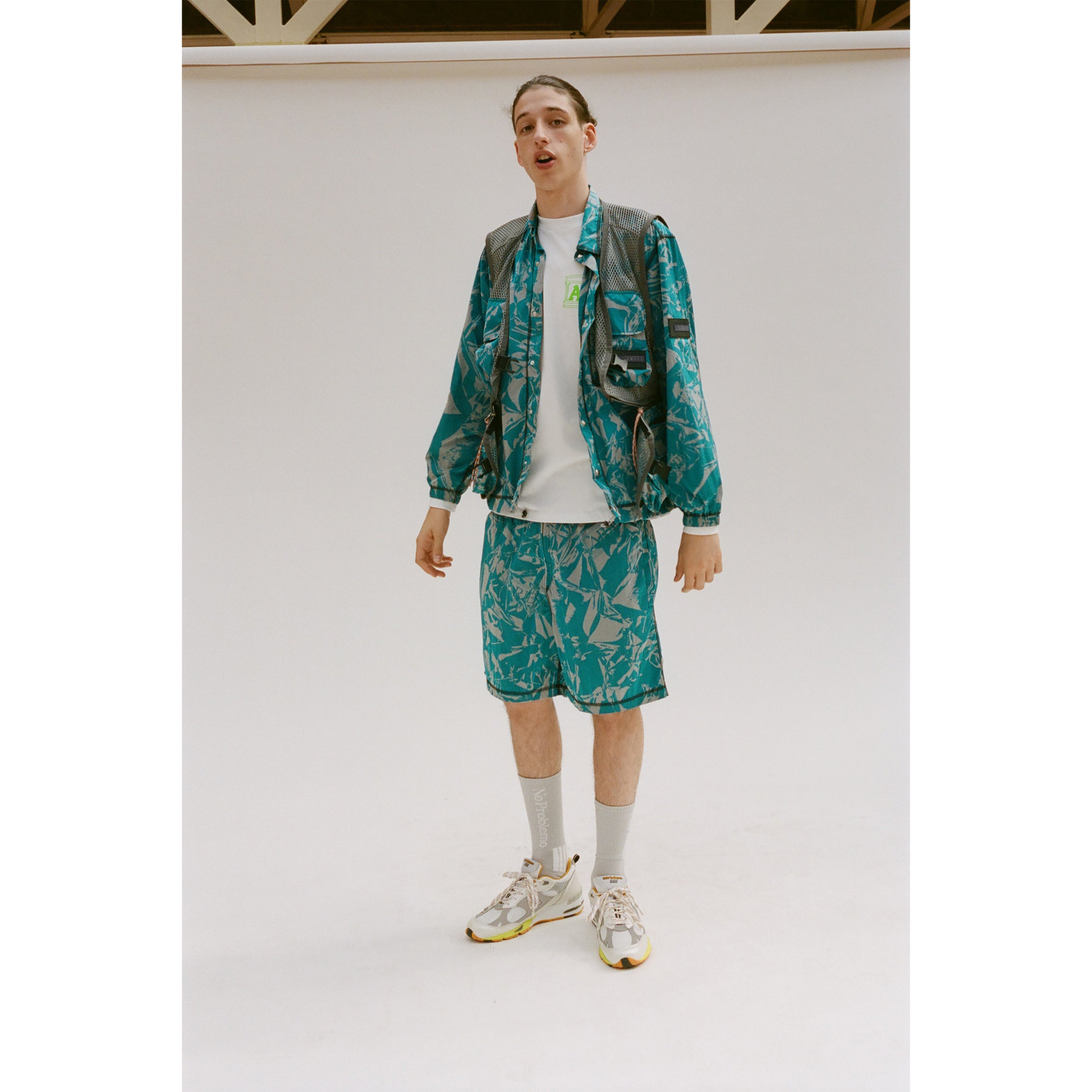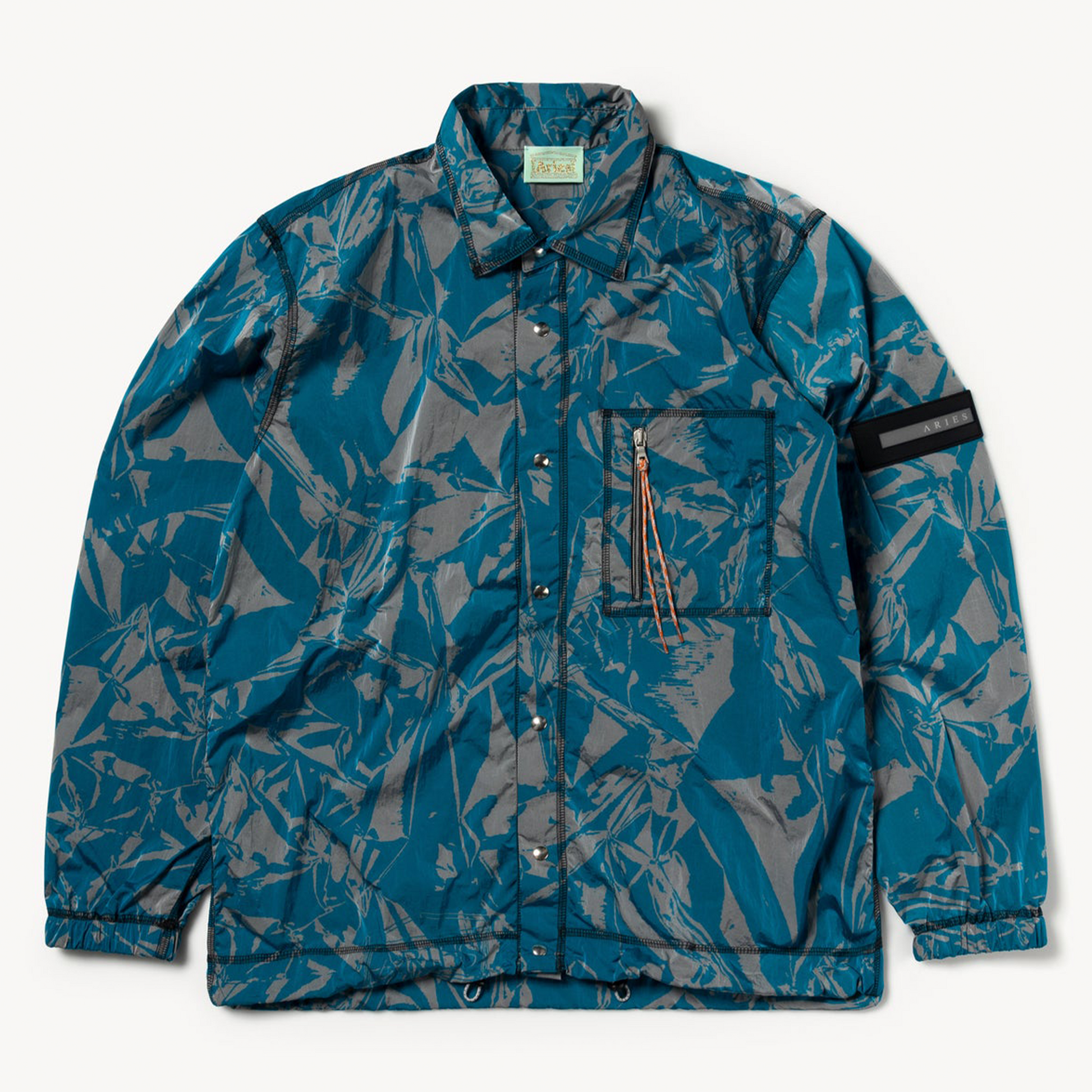Unisex loose-fit over-shirt shirt made from Aries crinkle-print nylon. With a zip front patch pocket, silicone brand patch on the sleeve and Aries MIIT screen-printed logo on the back. Made in Italy.