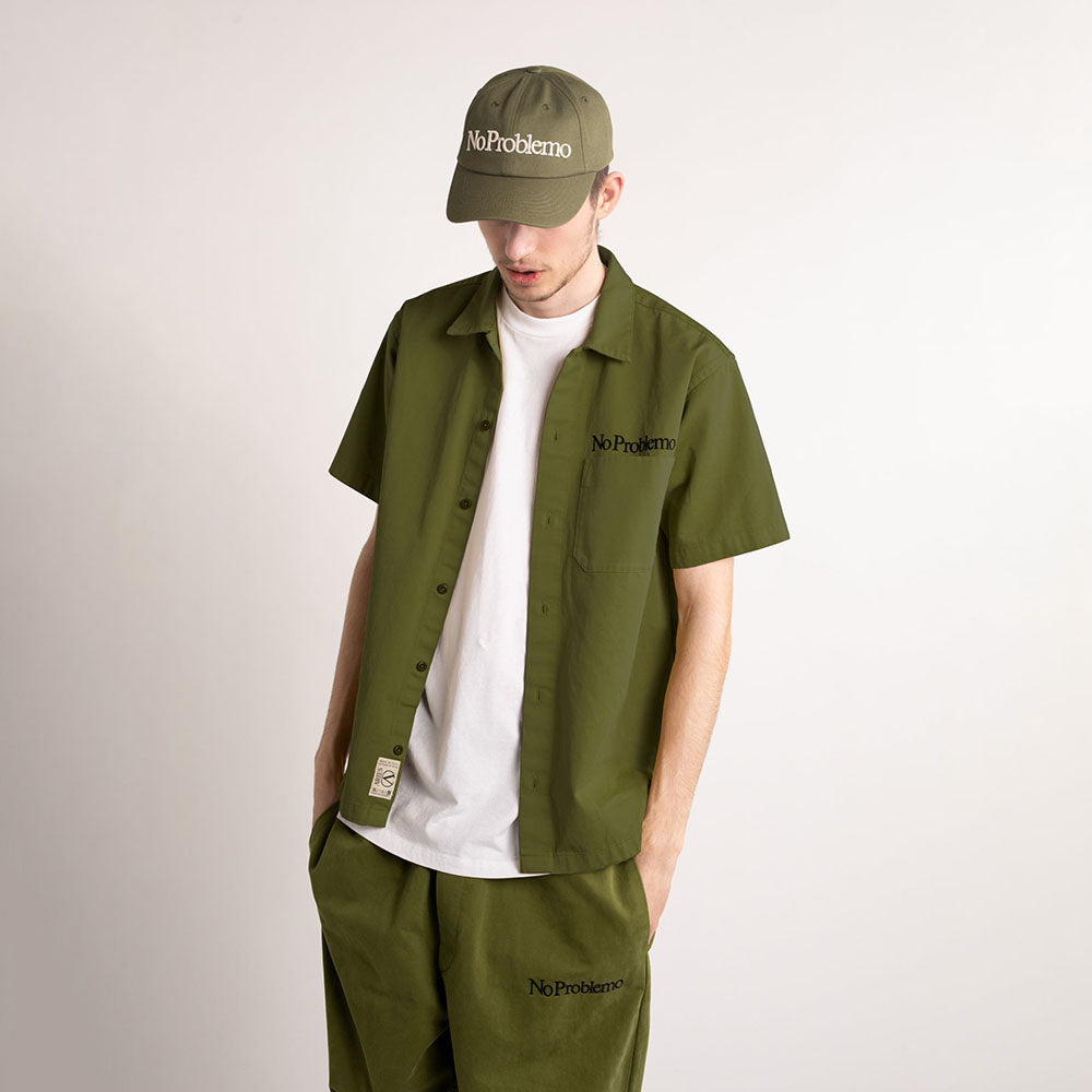 Loose-fit shirt made from heavy cotton twill. With a mini No Problemo logo embroidered on chest and Army woven label detail on the button stand. 100% cotton. Made in Portugal.