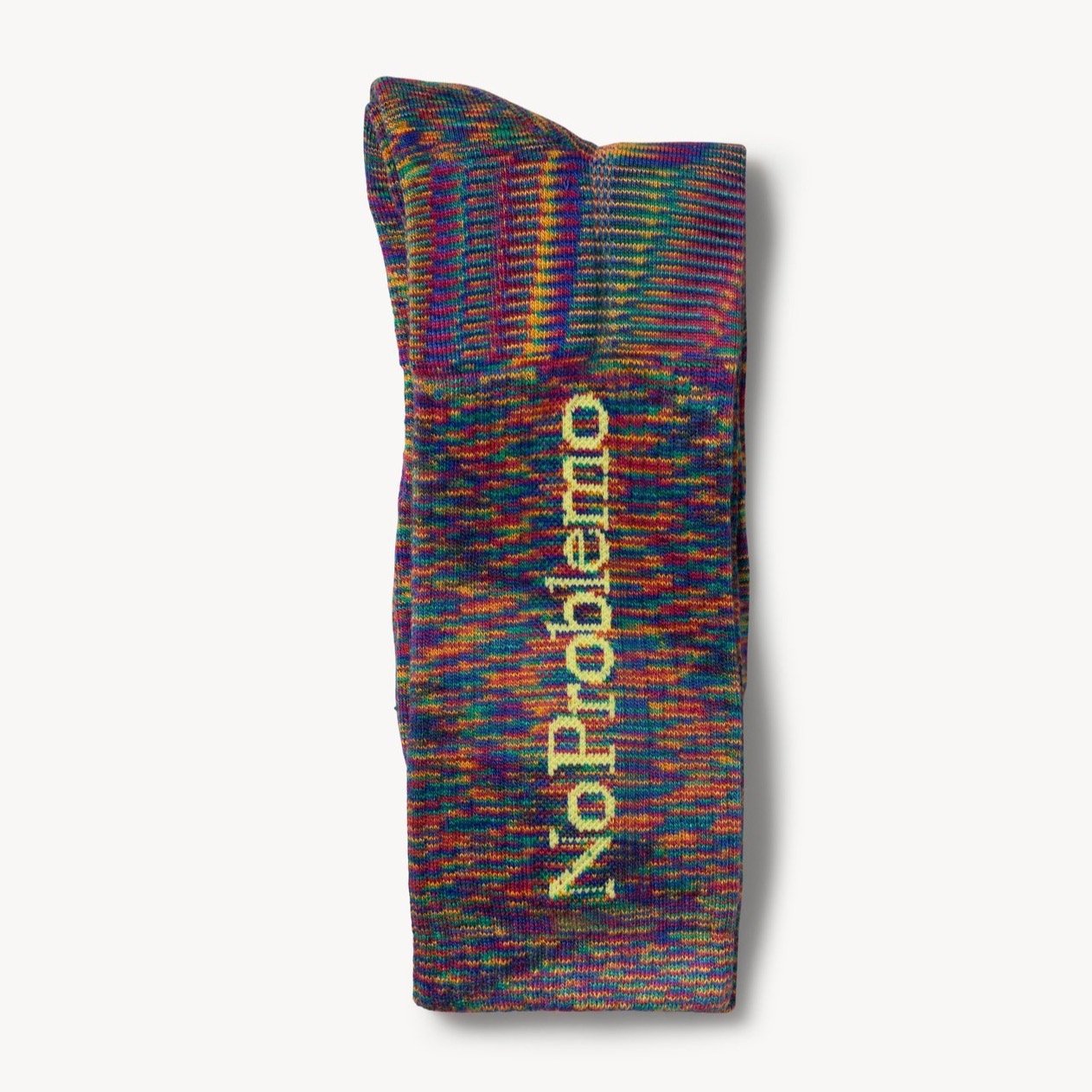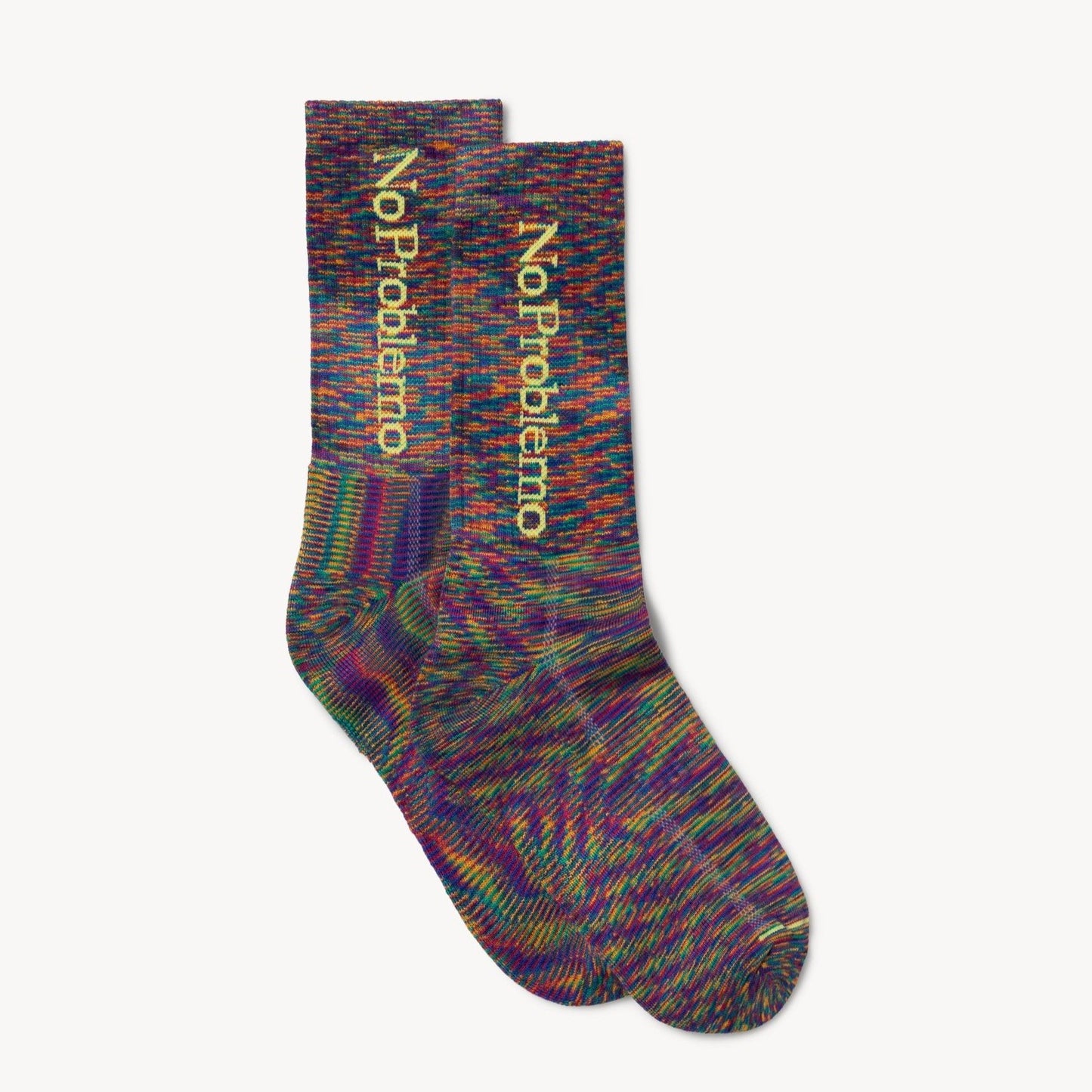 Socks knitted from space dye acrylic yarn, with a No Problemo jacquard logo. Made in Italy.