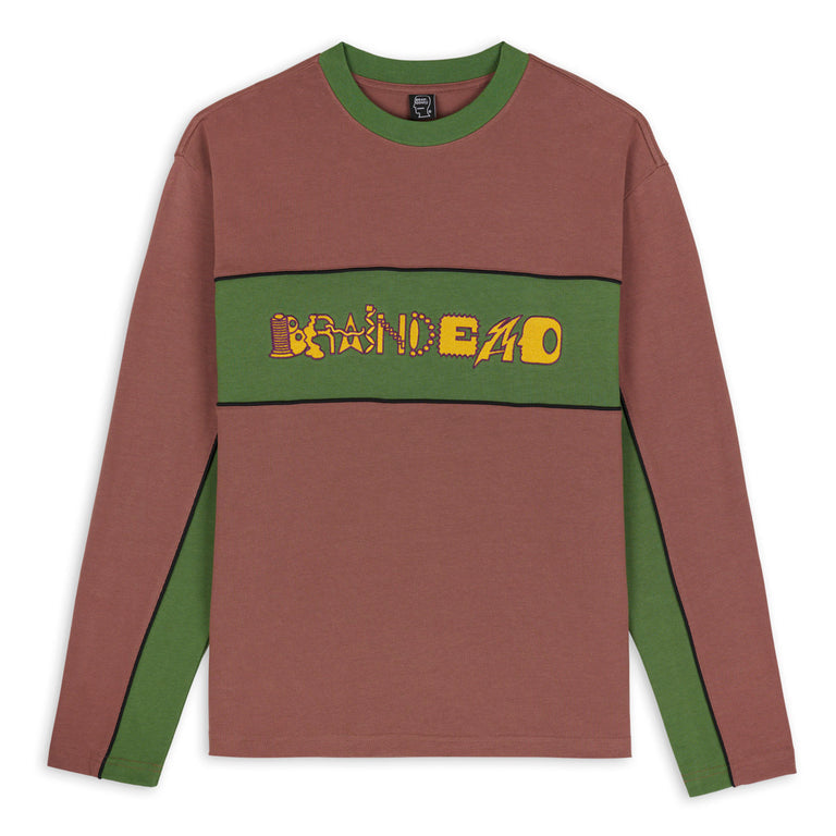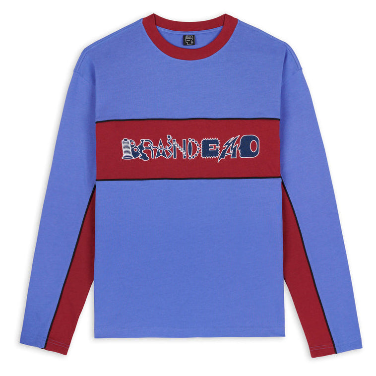 Our contrast long sleeve football shirt. Brain Dead typography embroidered on front. Material: 100% Cotton