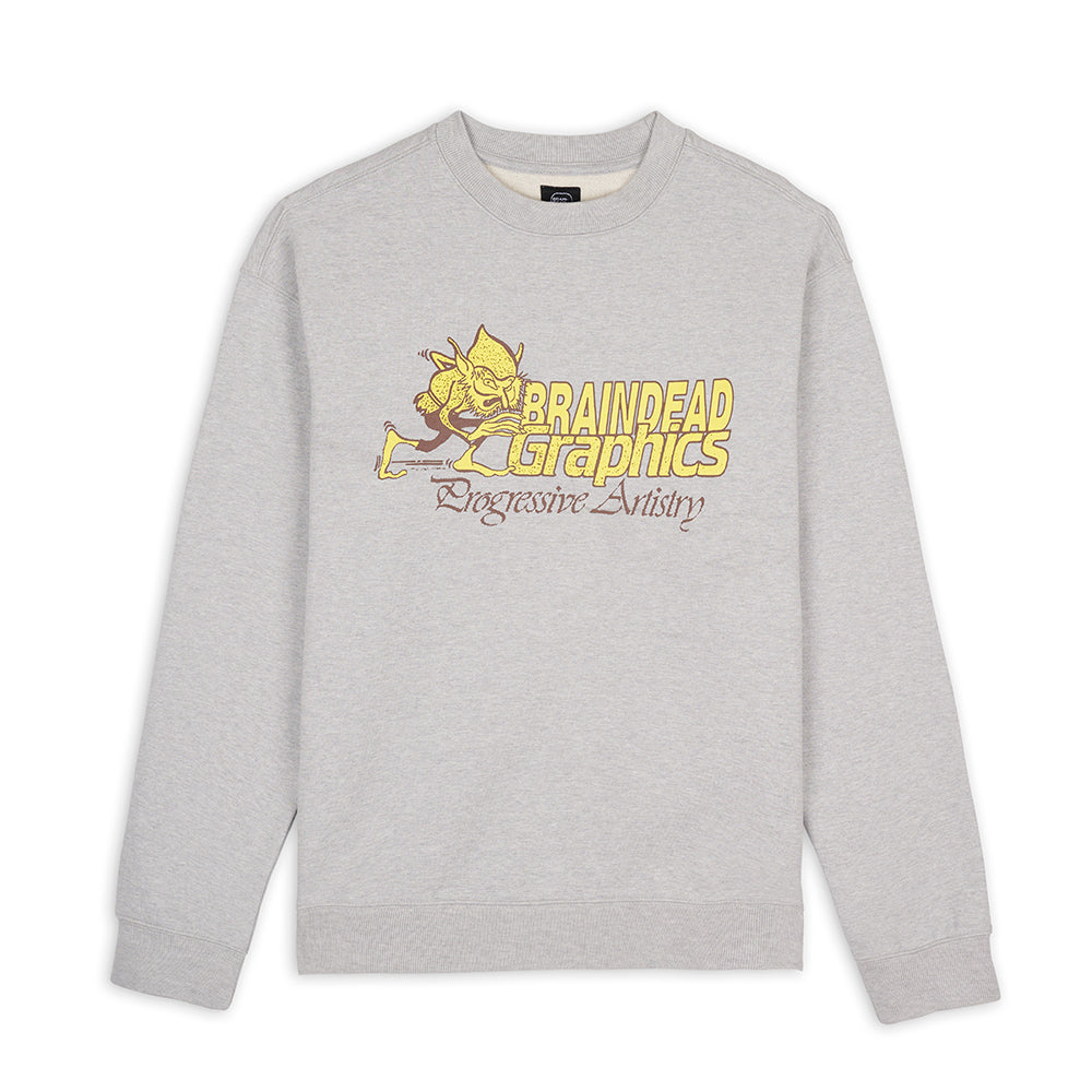 Our classic heavyweight cotton crewneck sweater. Progressive artistry graphics on the front and back. Material: 100% Cotton Color: Heather Grey