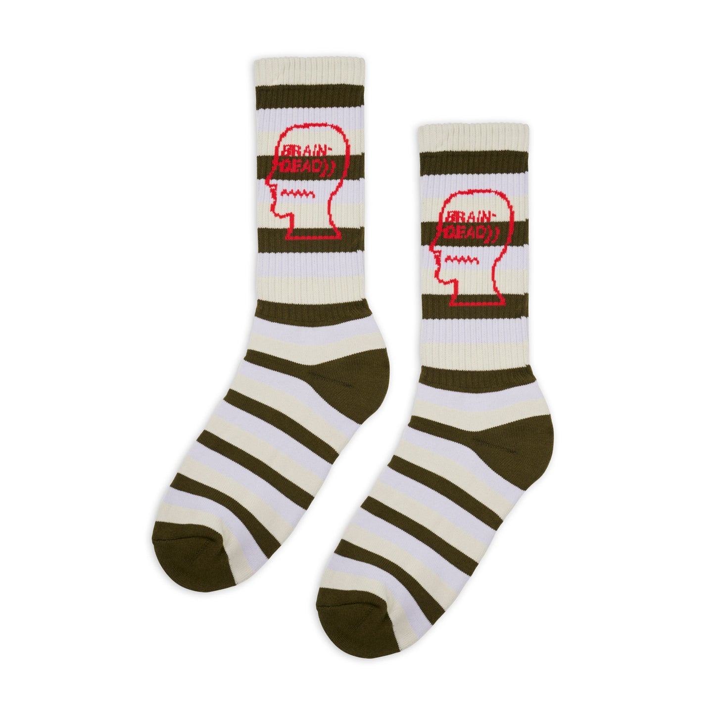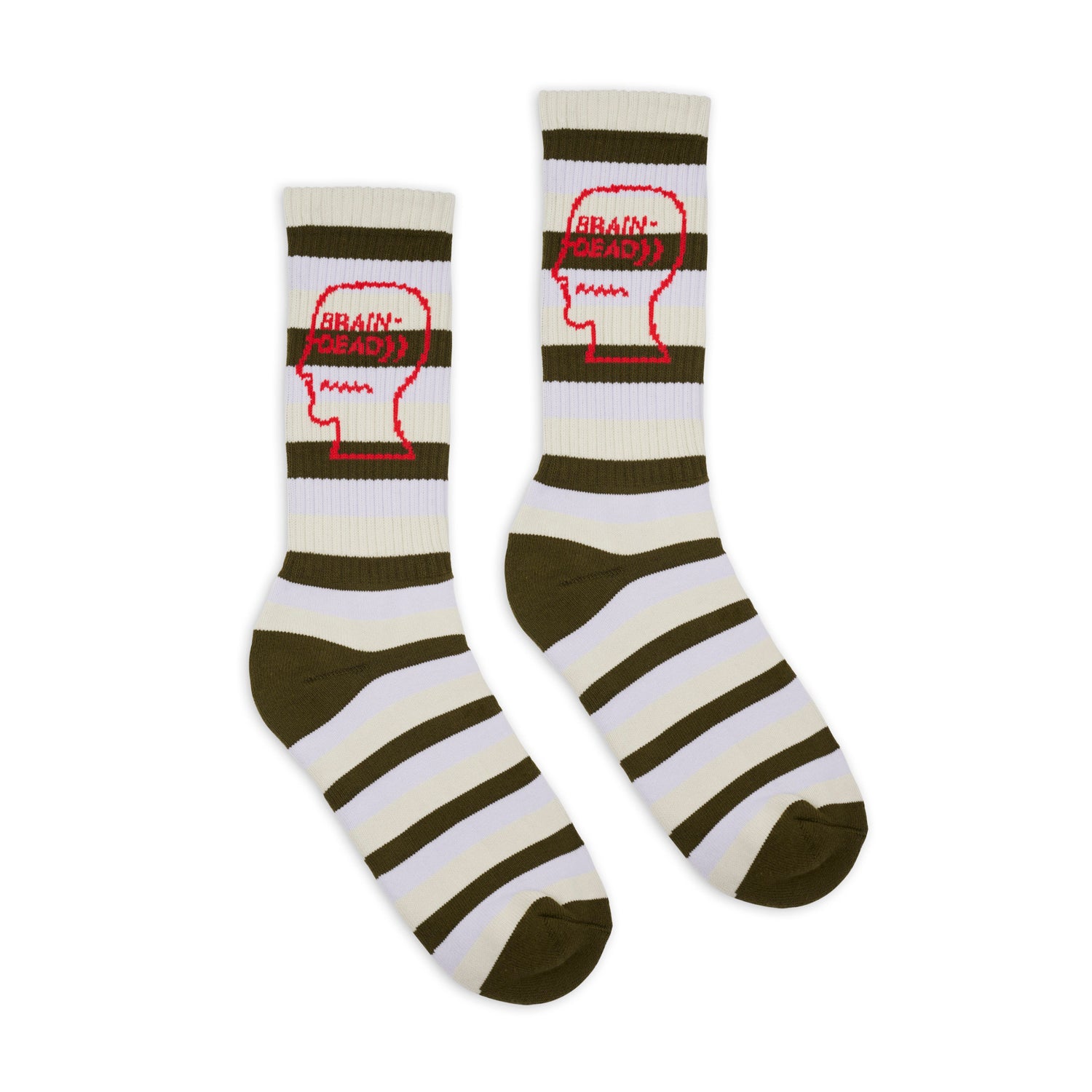 Our classic striped cotton socks. Brain Dead logohead on both sides. Material: 80% Cotton, 17% Polyester, 3% Spandex