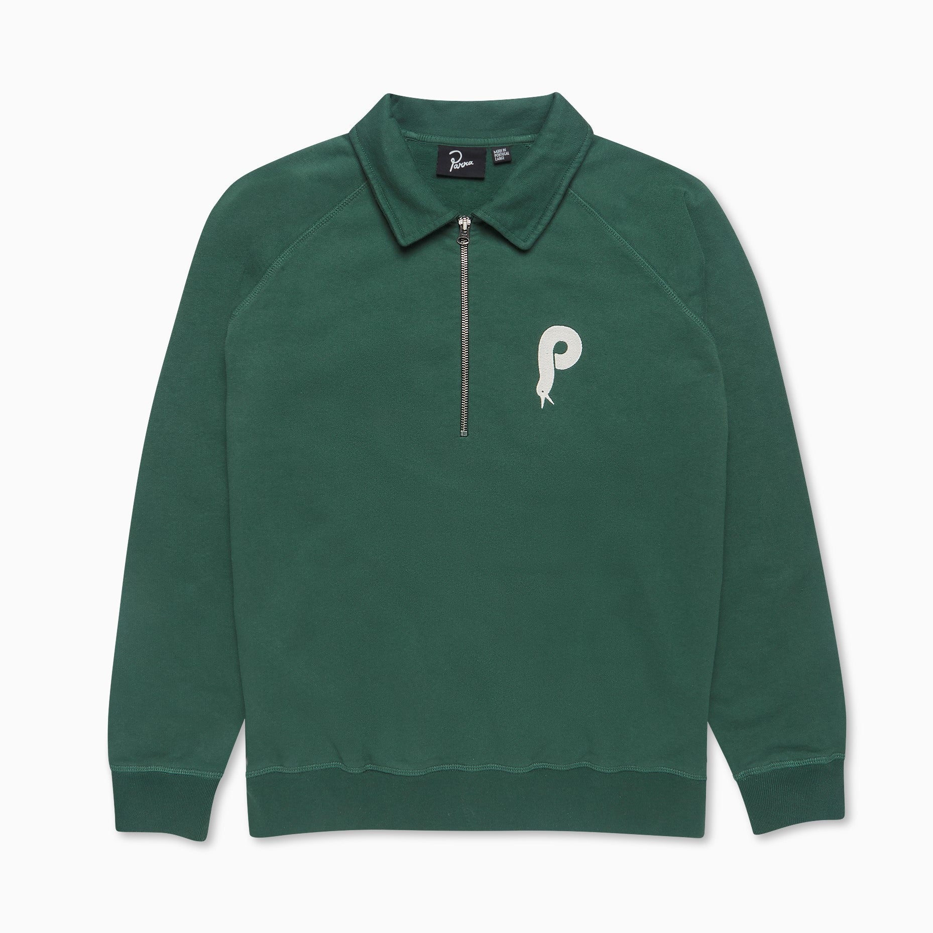 By Parra Birdface Font P Half Zip Polo Sweatshirt