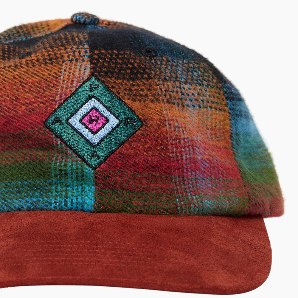 -6 panel hat construction, non reinforced -wool hat and faux suede visor -embroidery on front -visor can be curved -metal slide closure -clean gently with a washcloth slightly damped with cool to warm water made in Los Angeles, USA