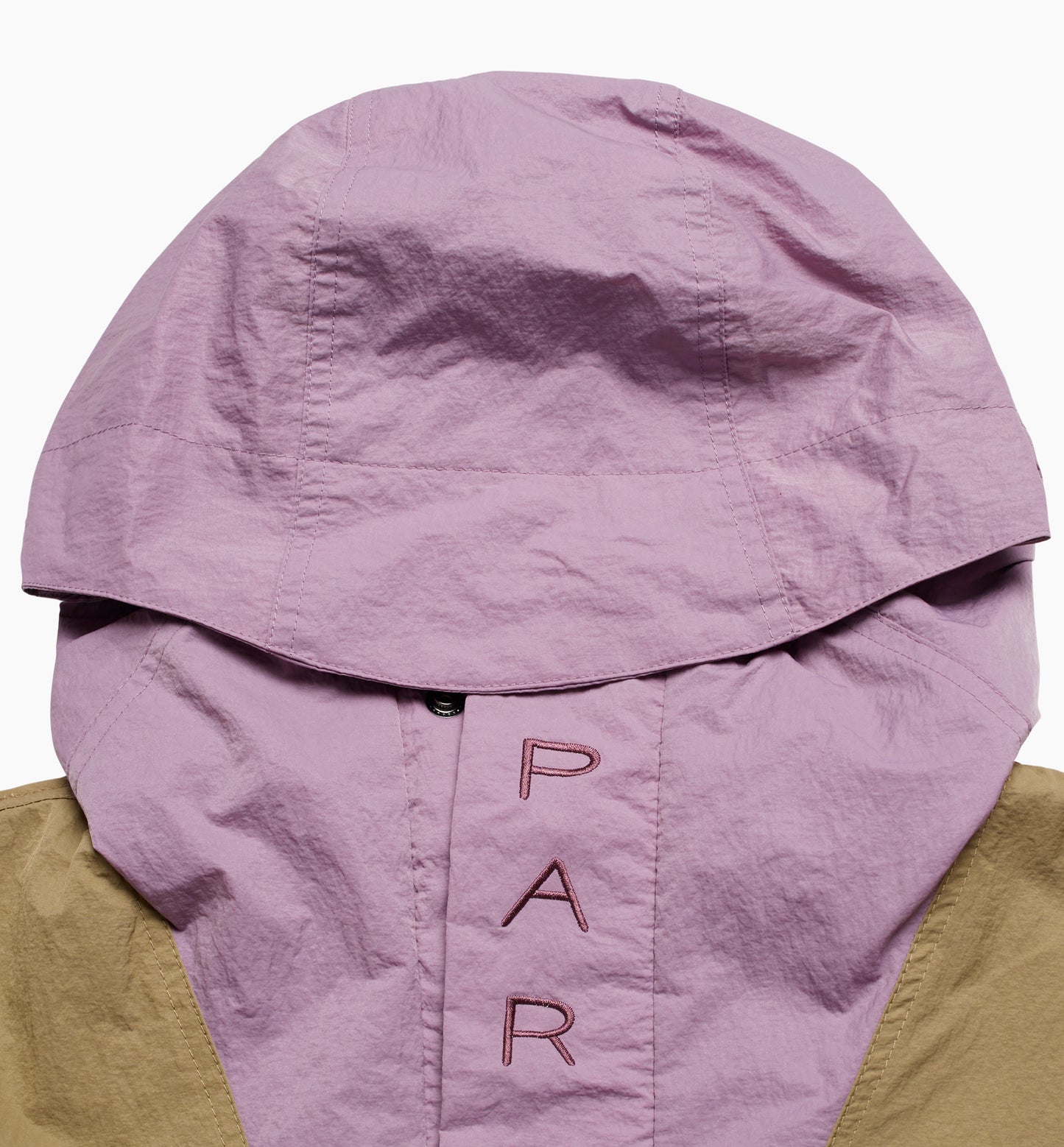 -windproof and water repellant lightweight polyester -tyvek label at front -parra embroidery at double placket button snap closure -full front YKK ™ zipper closure -2 big front pockets with placket and button snap closure -two YKK ™ zippered size pockets -V-insert hood -elastic draw cord and stopper at waist -snap button adjustable elastic cuffs -machine wash gently, do not tumble dry crafted in China