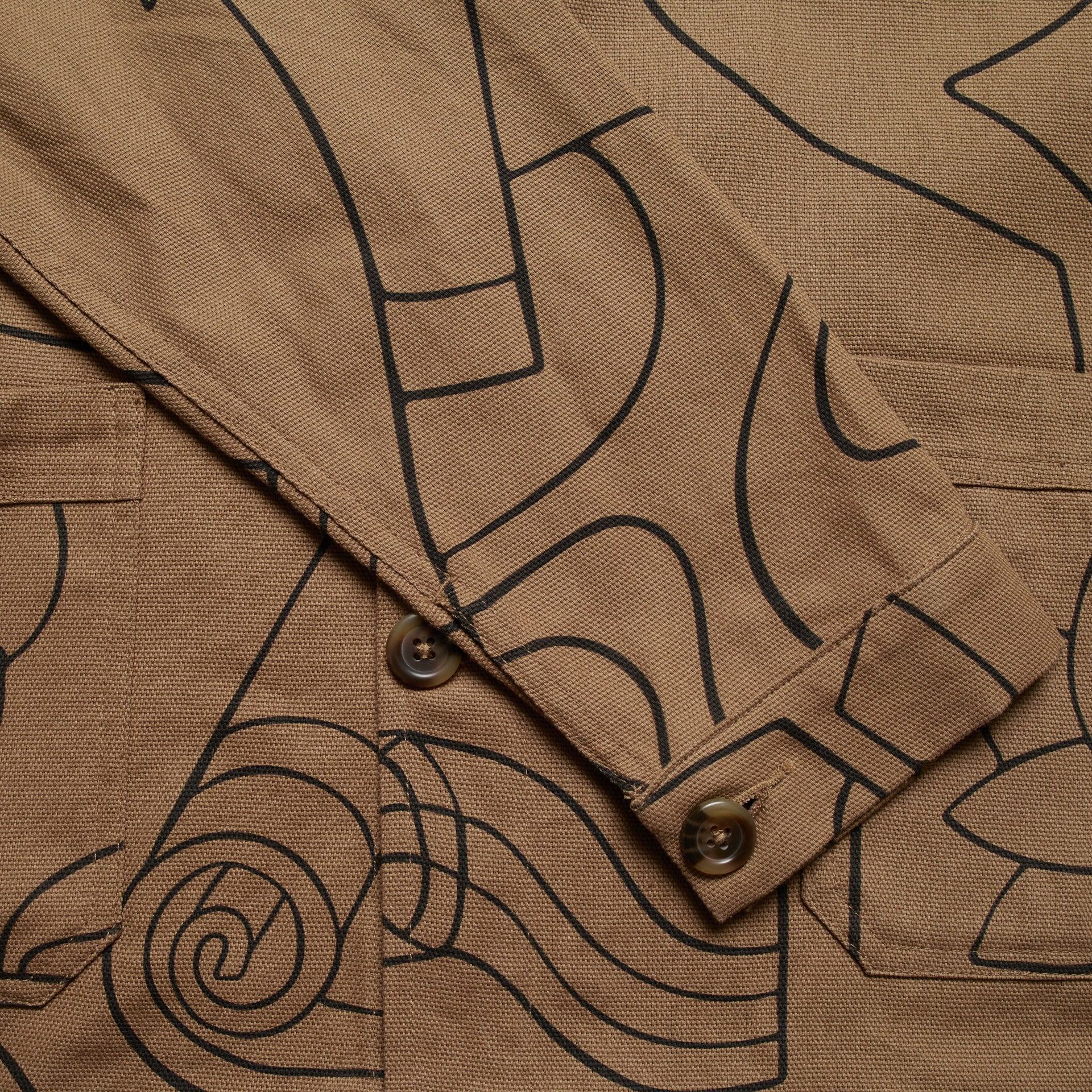 -classic French worker jacket -made from an 100% canvas cotton -random allover printed -button fastenings -three patch pockets -buttoned split cuff -relaxed fit -matching the pants -cold wash, do not tumble dry -every piece is uniquely printed made in China