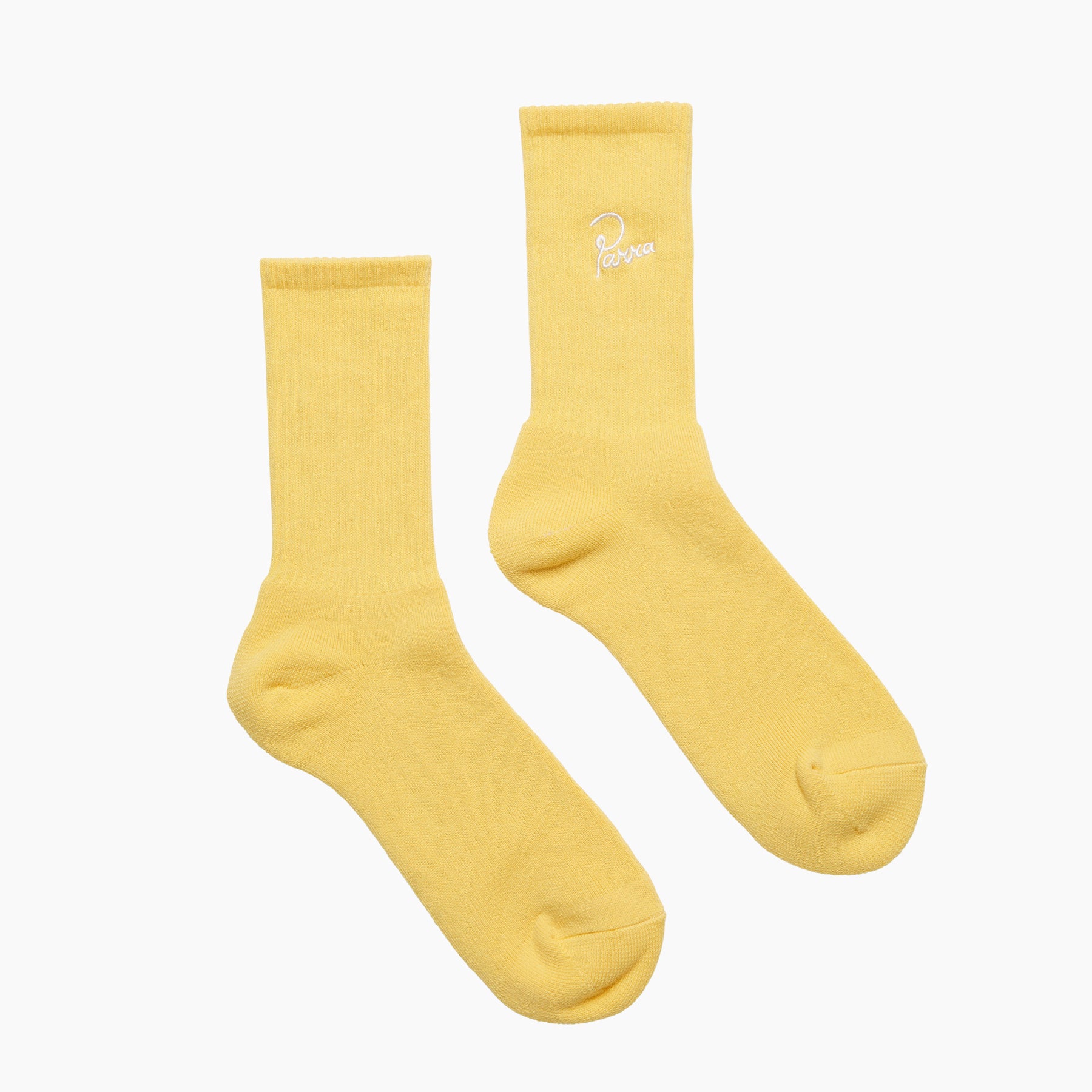 -high quality crew socks -embroidery of classic parra logo -premium fabric blend for a soft touch -cotton 63% acrylic 27% polyester 9% spandex 1% -woven in Tokyo on a vintage circular knitting machine, assembled in 1970's sizing: EU: 41 to 45 / UK: 7.5 to 10.5 / US: 8.0 to 11.0 made in Tokyo, Japan