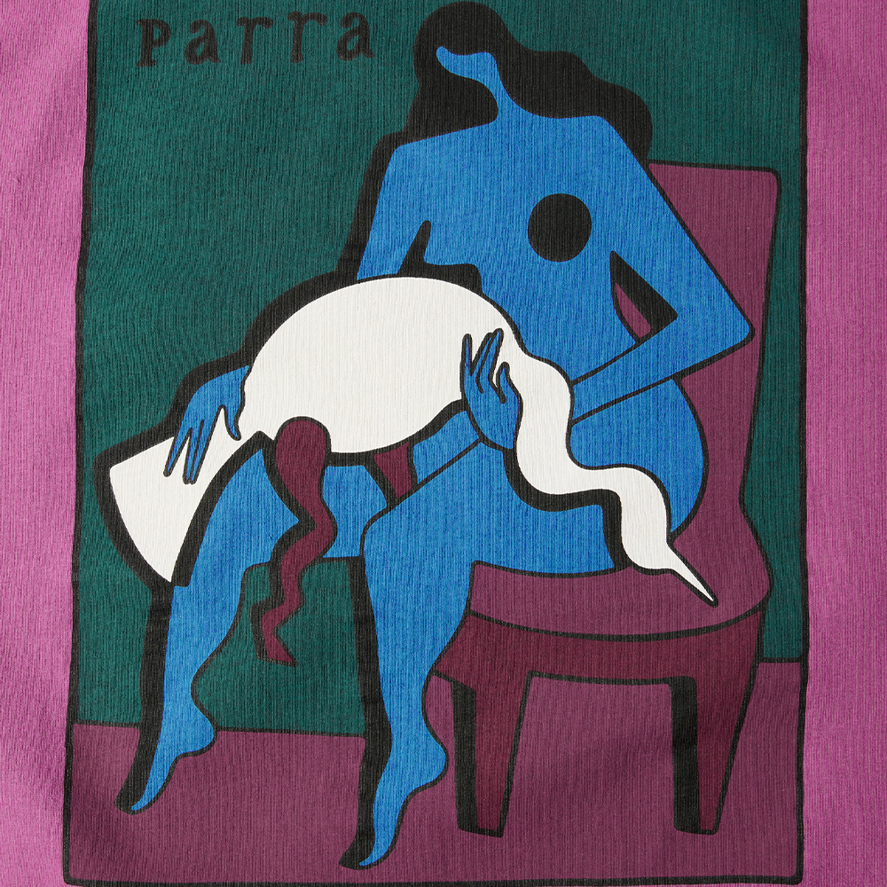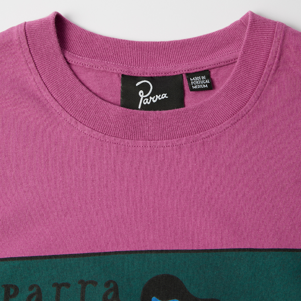 My dear swan artwork as a waterbased screenprint at the front. All Parra t-shirts are a boxy custom fit.
