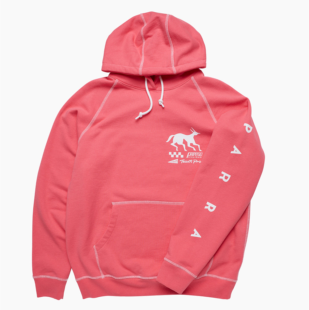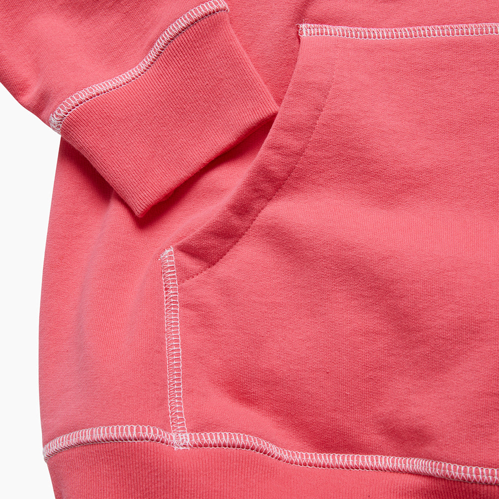 -100% brushed cotton, 450 grams/m2, heavyweight fabric -half brushed inside for softness -eco pre washed for zero shrinkage -tonal drawcords -waterbased screenprint at chest, back and sleeve -3 piece hood -fits true to size, take your normal size -machine wash inside out at 30°, do not tumble dry made in Portugal