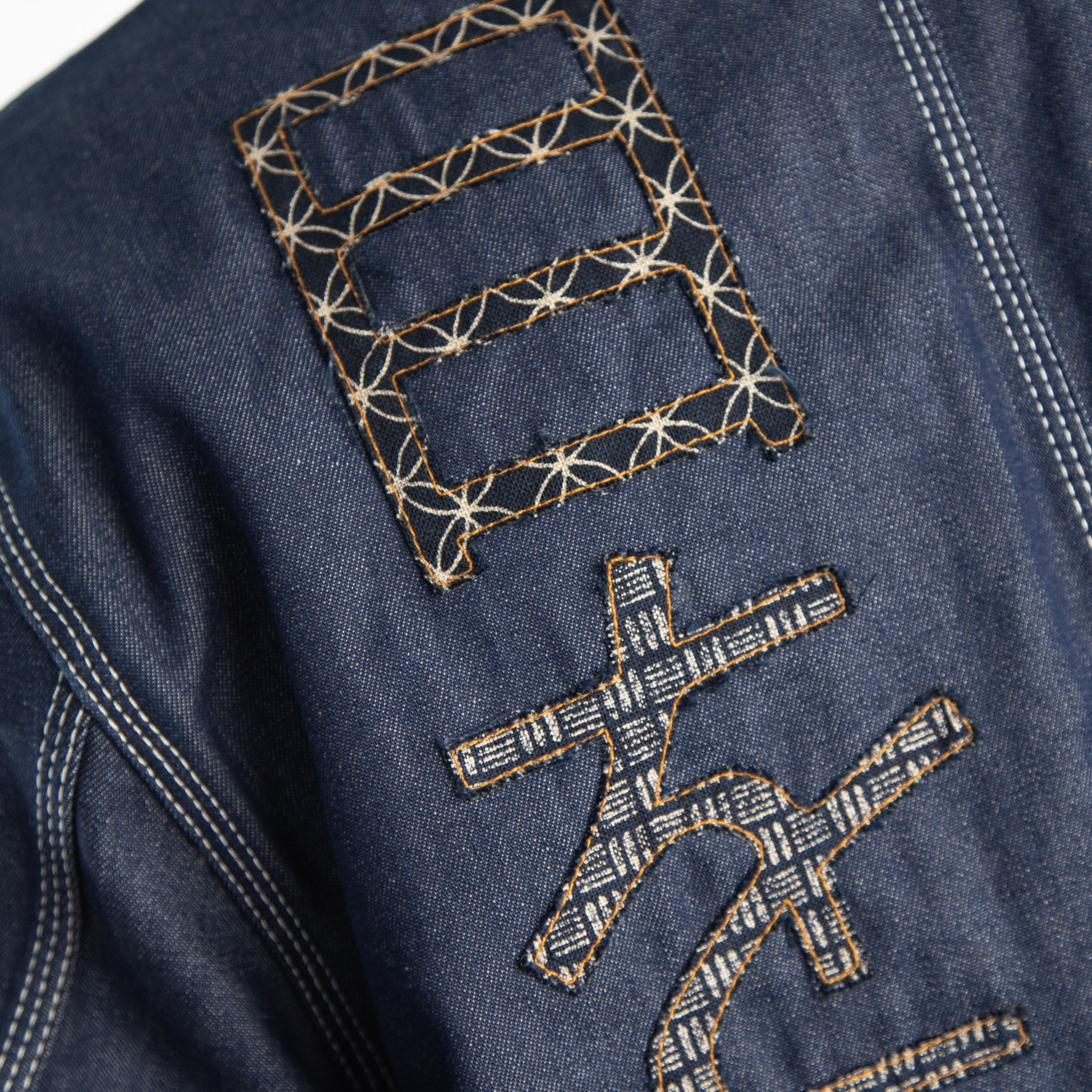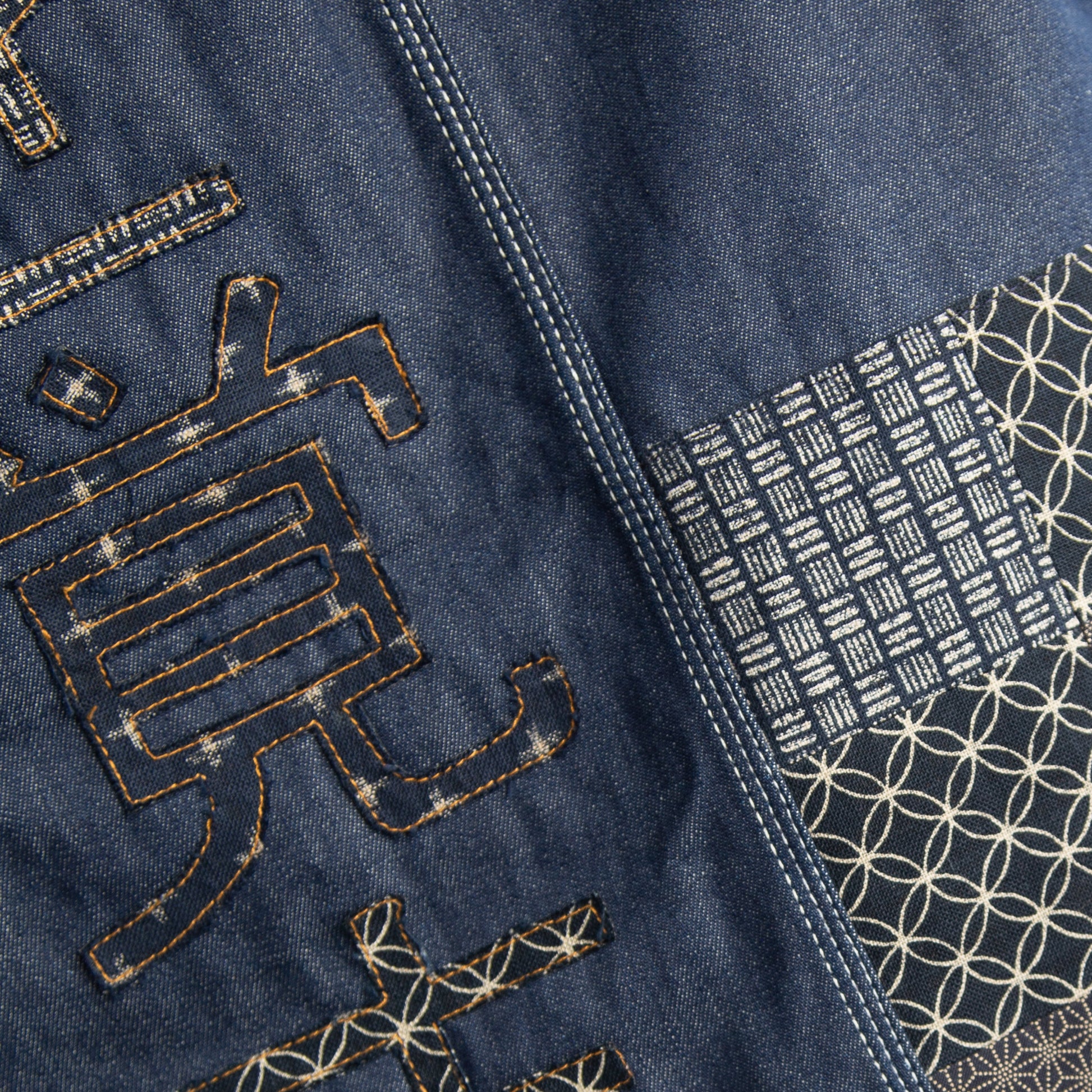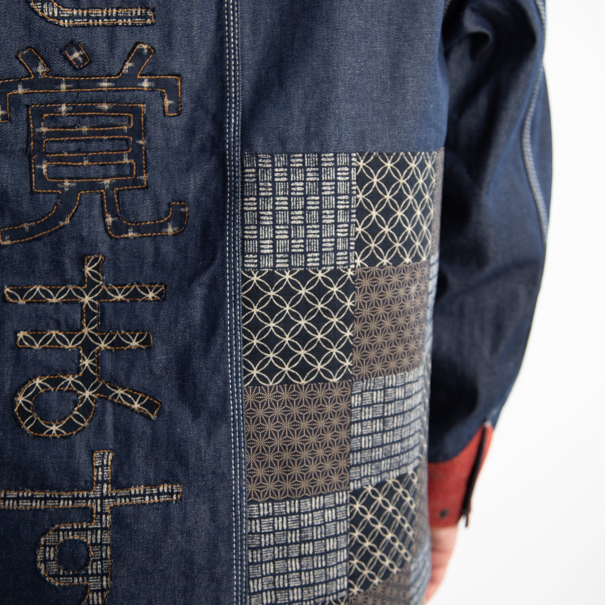 - The jacket has been reimagined using a selection of Japanese patterned fabrics ((Asanoha 麻の葉, Kagome 籠目, Shippou 七宝, Nami 波)) hand stitched Sashiko details, and large Kanji monogram