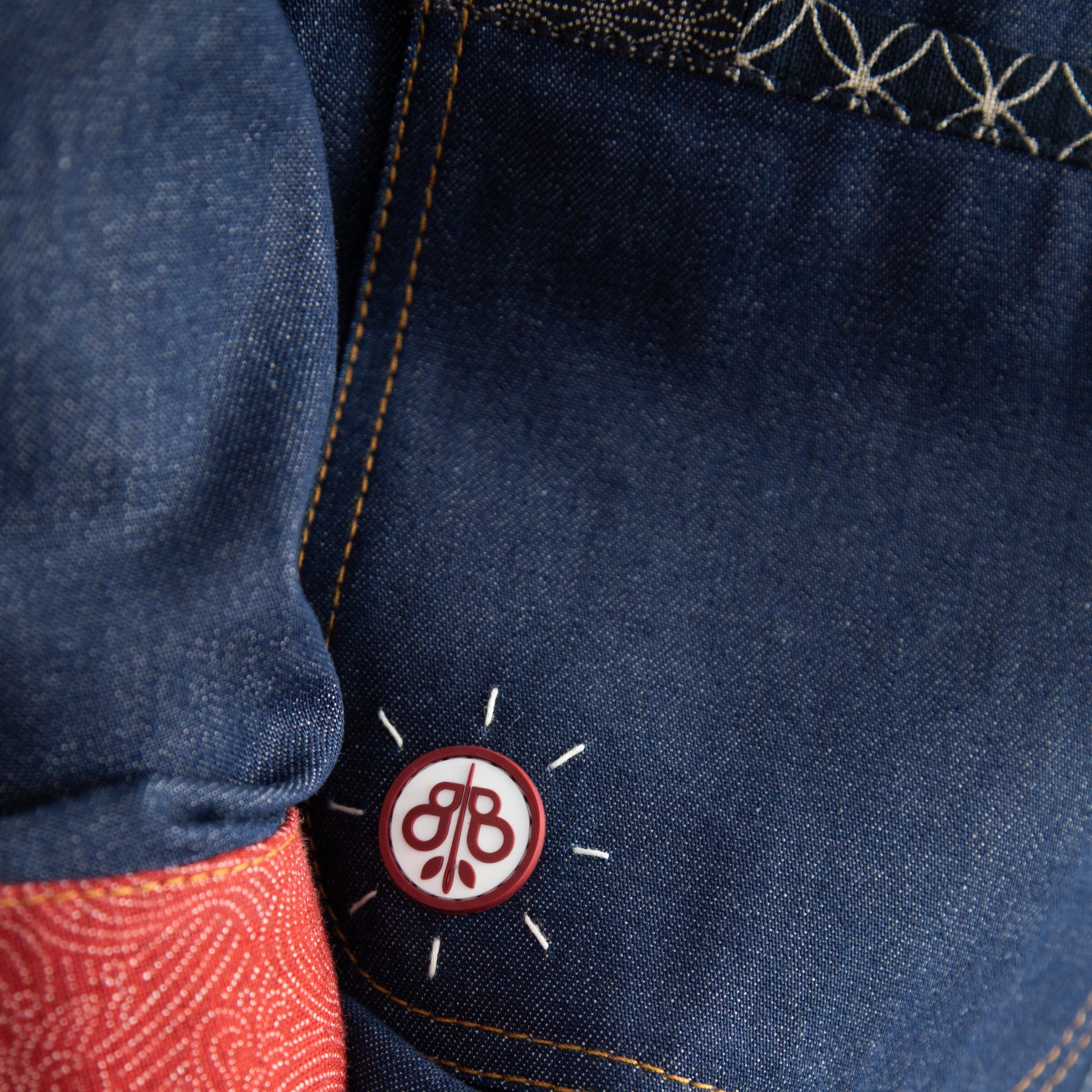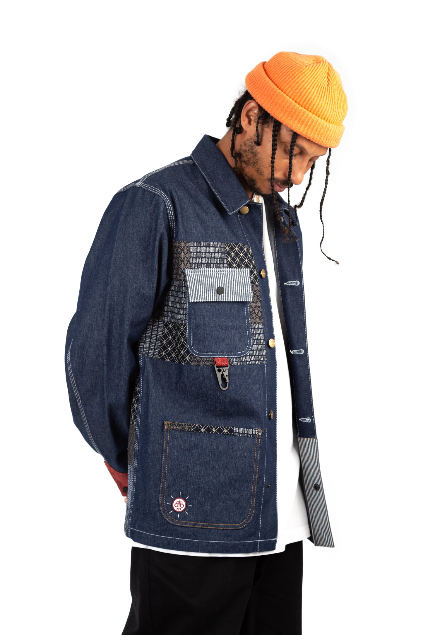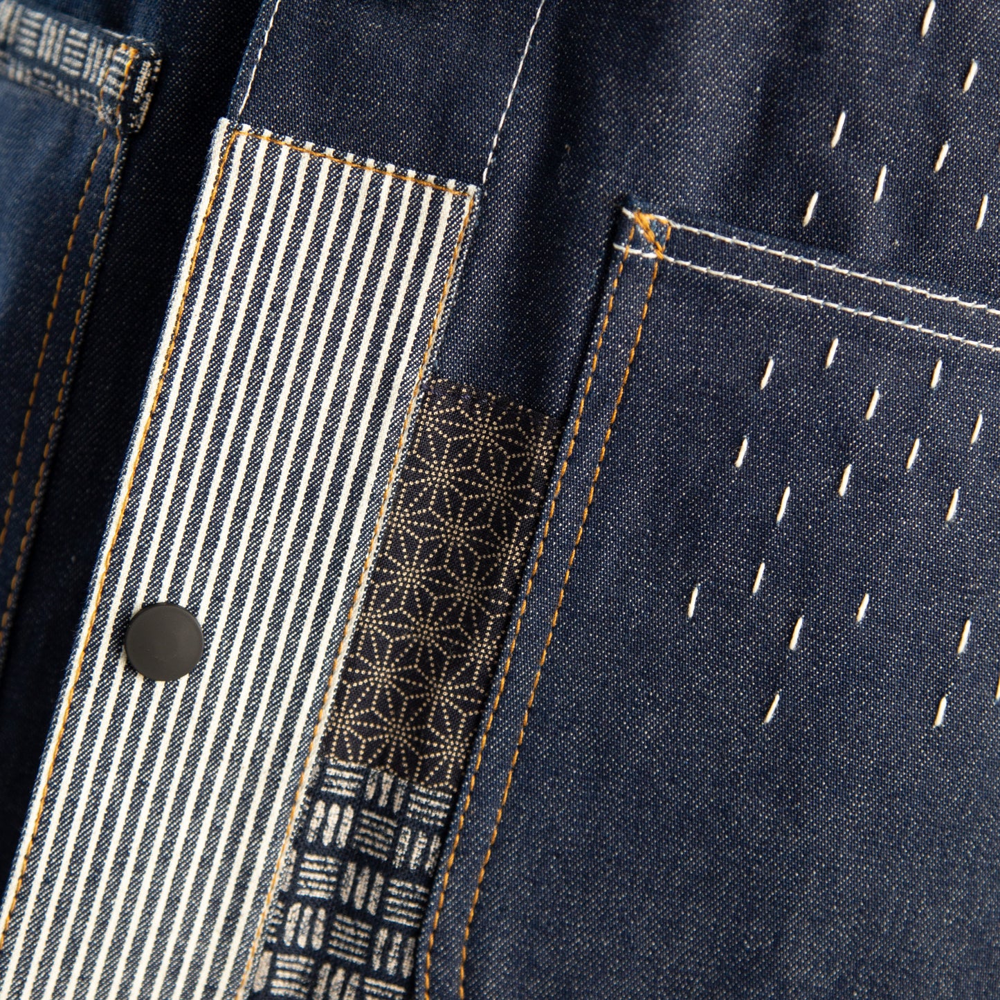 - The jacket has been reimagined using a selection of Japanese patterned fabrics ((Asanoha 麻の葉, Kagome 籠目, Shippou 七宝, Nami 波)) hand stitched Sashiko details, and large Kanji monogram