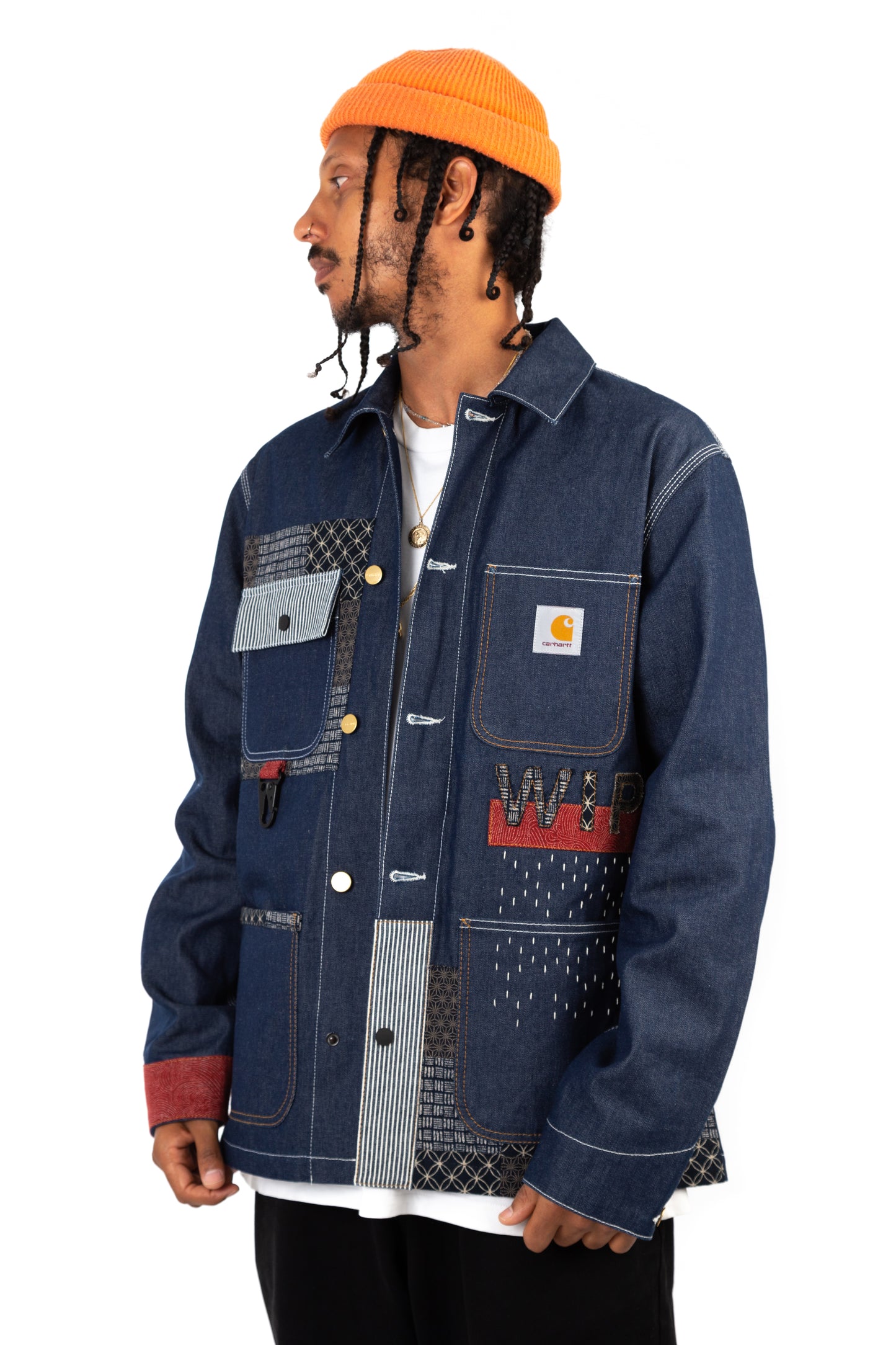 - The back of the jacket features the phrase 目を覚ます((Wake up)) not in the literal sense, but to come to ones senses, to be enlightened. This phrase pairs nicely with the monogram WIP ((work in progress)) that is featured on the front left side of the jacket, this is both a nod to Carhartt and emphasises the message the jacket is portraying .