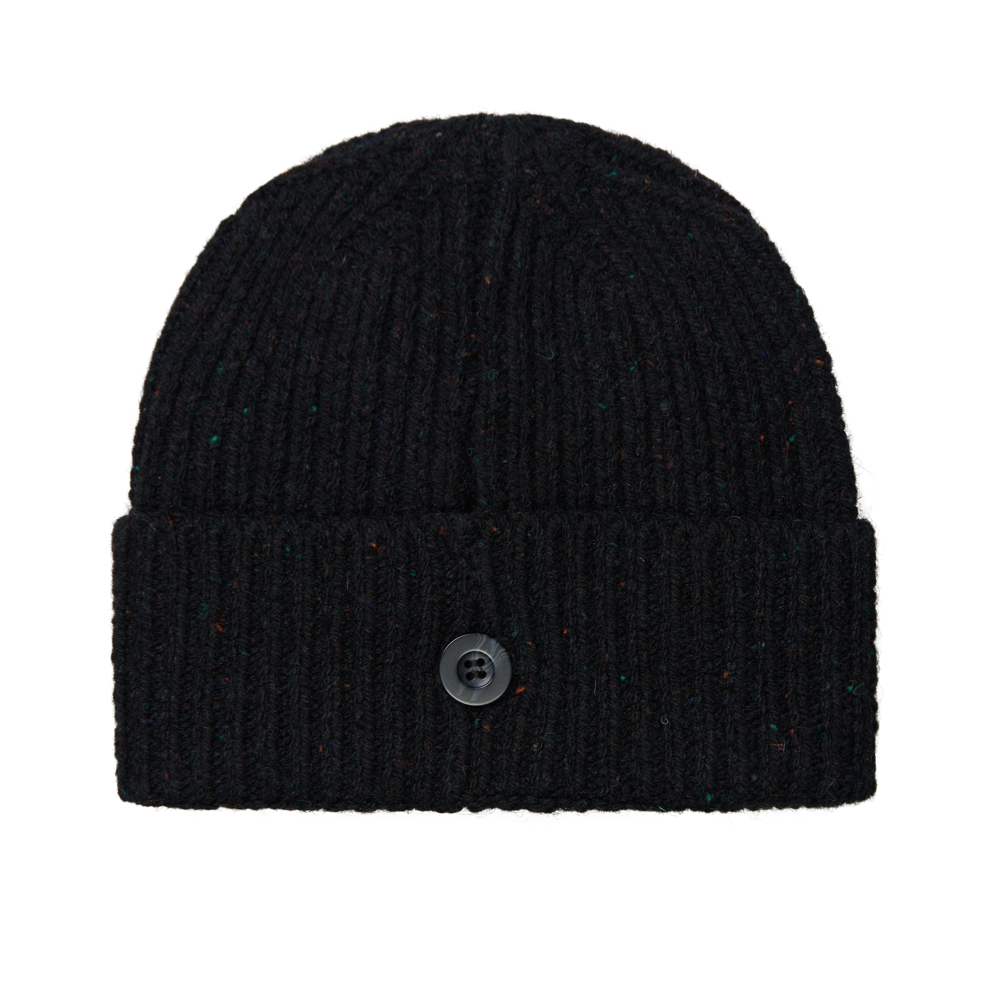 The Anglistic Beanie is knit from a tactile blend of lambswool, cotton, and acrylic yarn in a stretchy rib stitch, and features a subtly speckled look throughout. Its cuff is detailed with a woven Square Label on the front, and a fixed faux-horn button at the back.