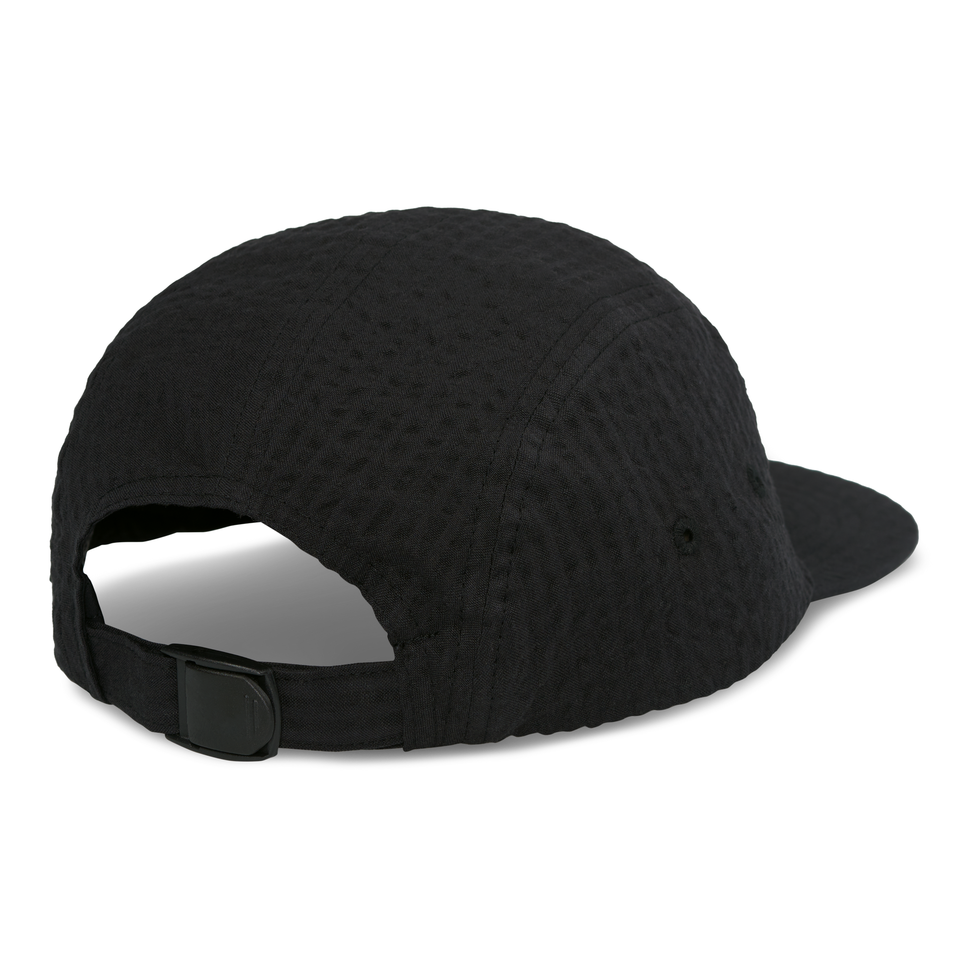 100% Cotton, 3.6 oz head circumference: 53 - 62 cm / 20.9 - 24.4 inch unstructured lined at front panel five panels firm, flat peak adjustable strap with plastic clip closure embroidered ventilation eyelets on one side