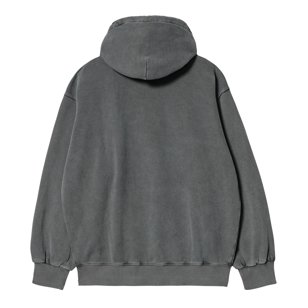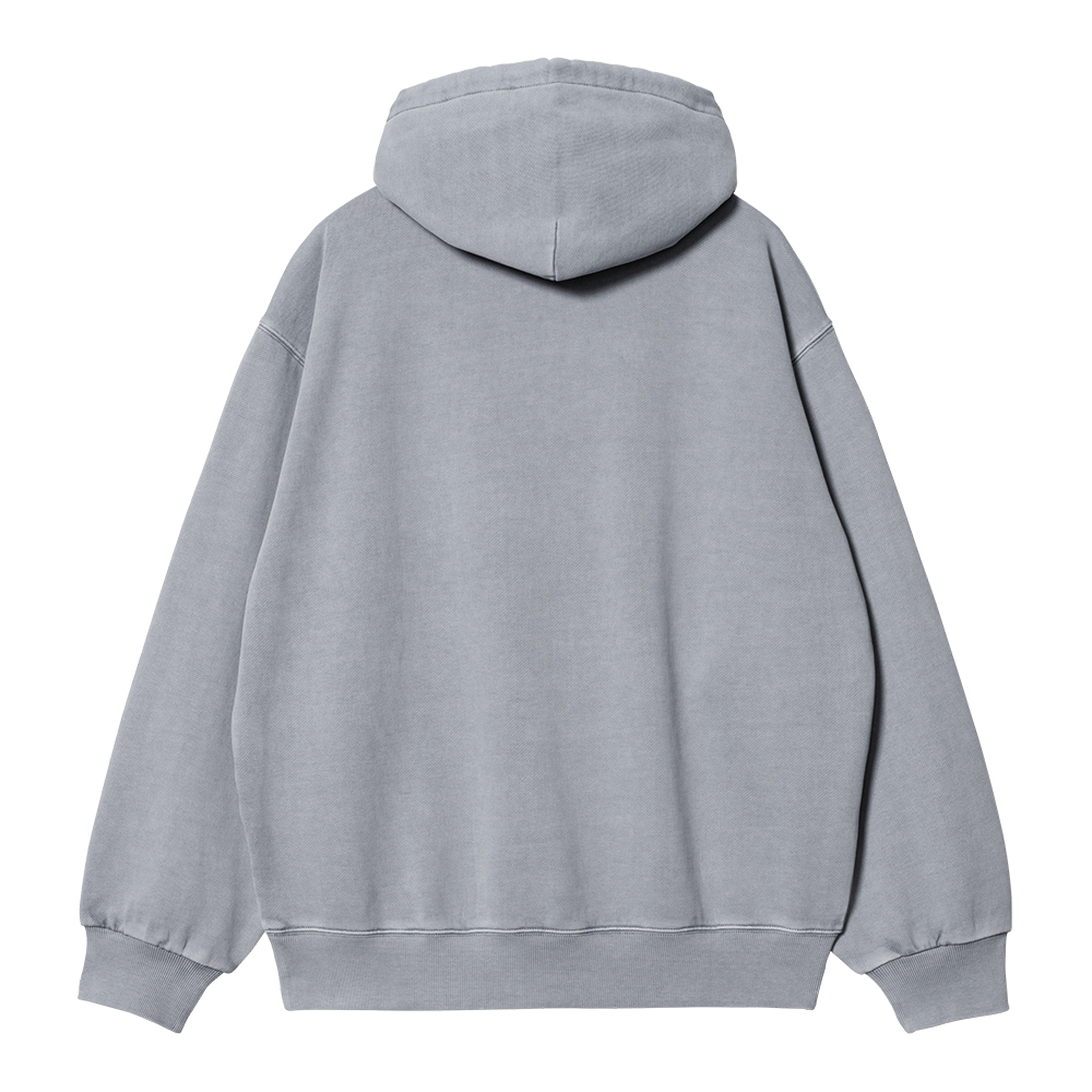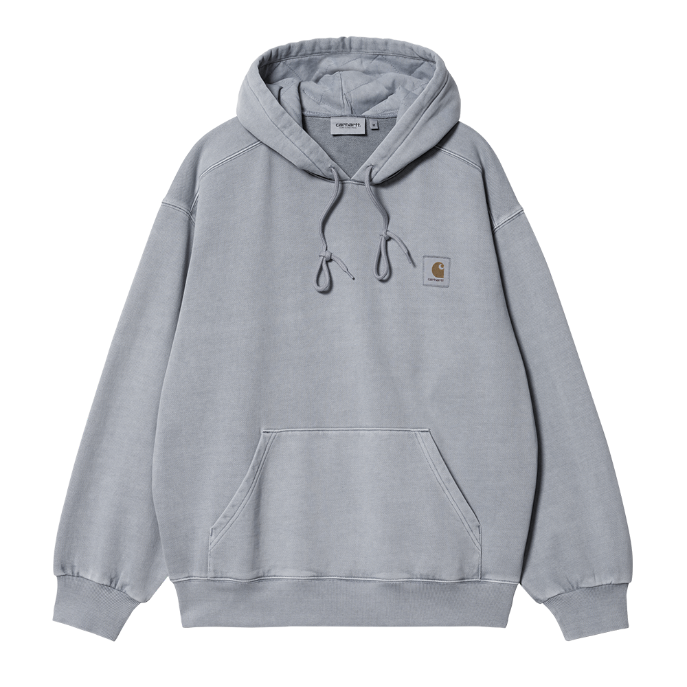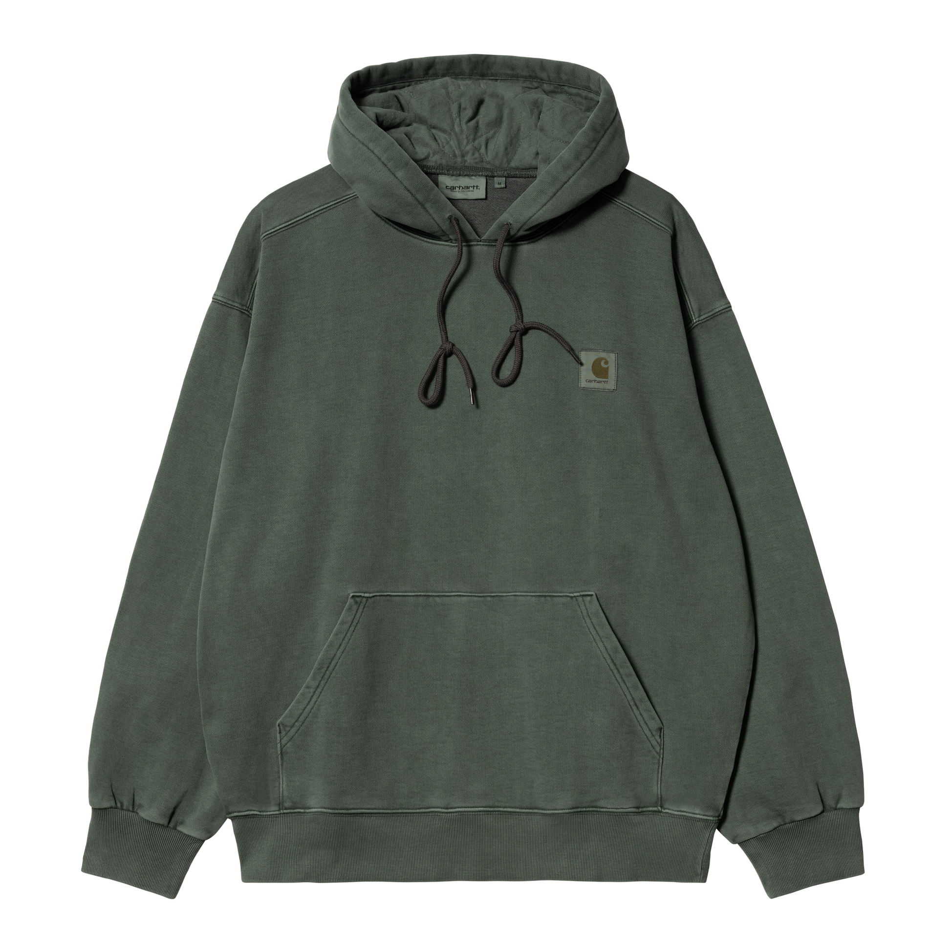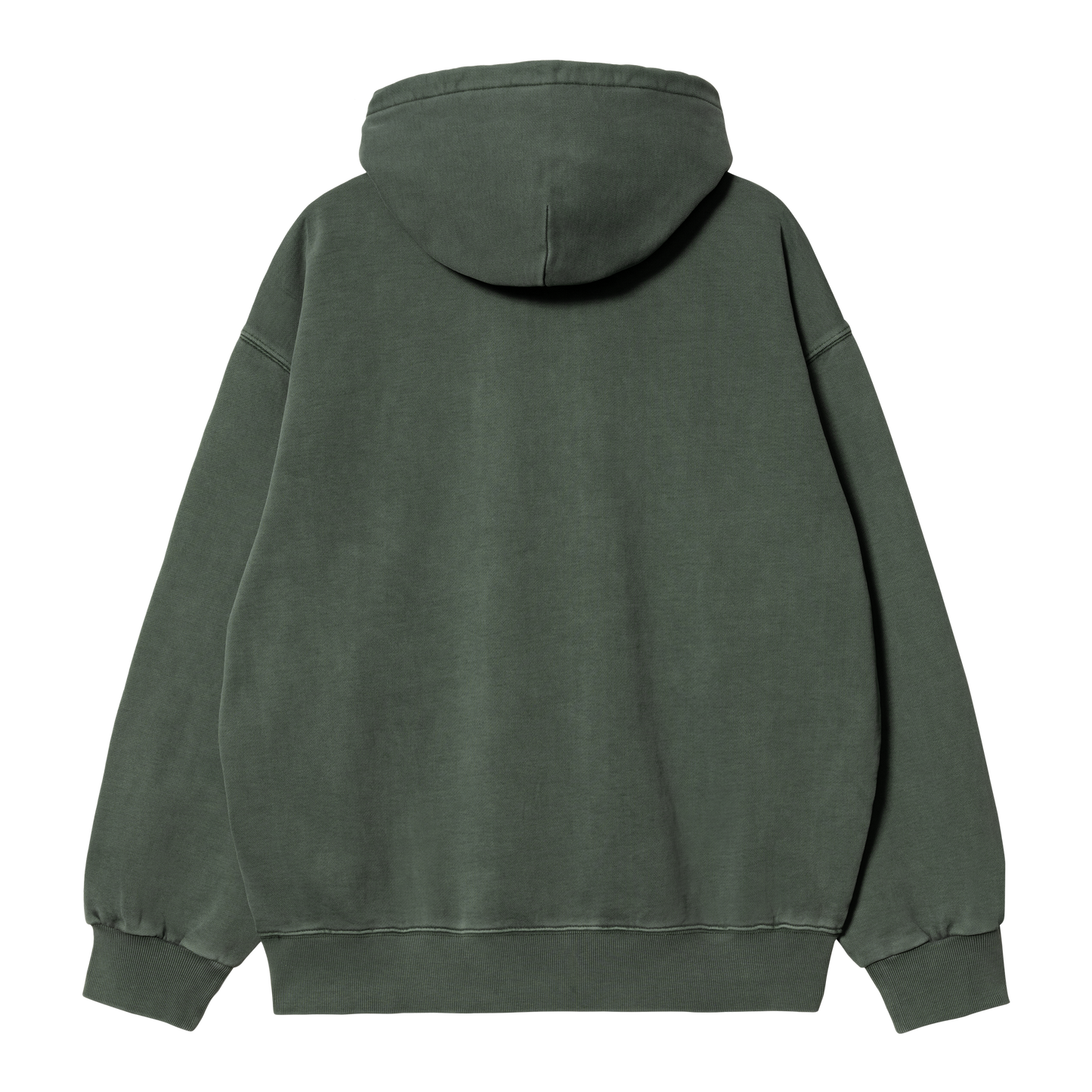The Hooded Vista Sweatshirt is constructed from heavyweight cotton jersey, which has been brushed for a fleece-like backing. This style is cut in a balloon fit, which is a little looser and boxier, but also characterized by dropped shoulders and ribbed trims. Additionally, the style has been garment-dyed, giving it a washed yet saturated hue. A quilted and adjustable hood offers insulation, and a woven Square Label, rendered murky by the garment-dyeing process, appears on the left chest.