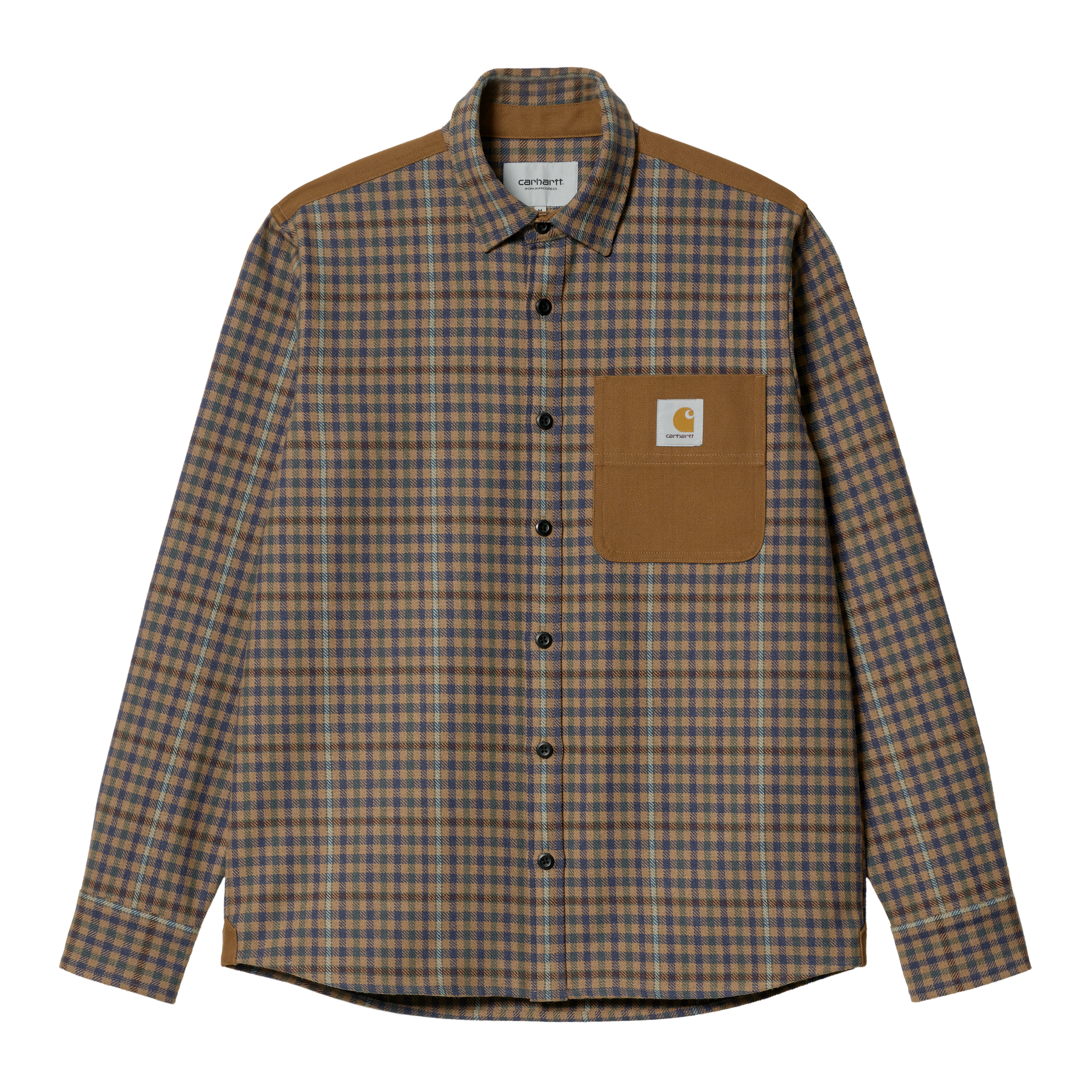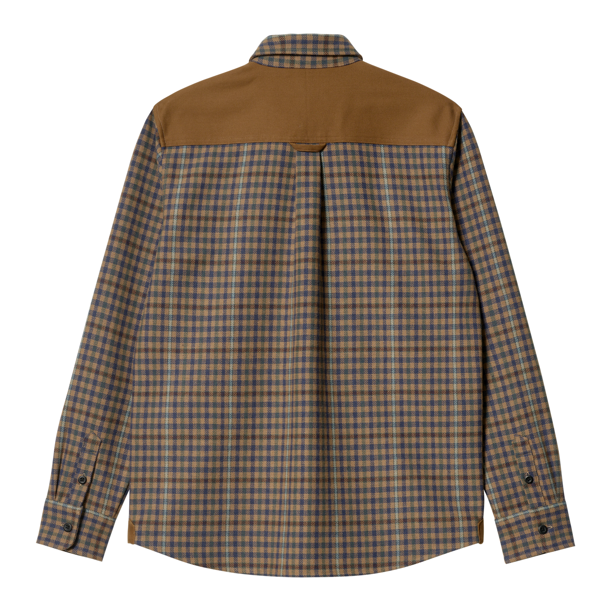 50/50% Wool/Polyester Tweed, 10.1 oz loose fit yarn dyed chest pocket and back yoke in dearborn canvas square label WIP script label