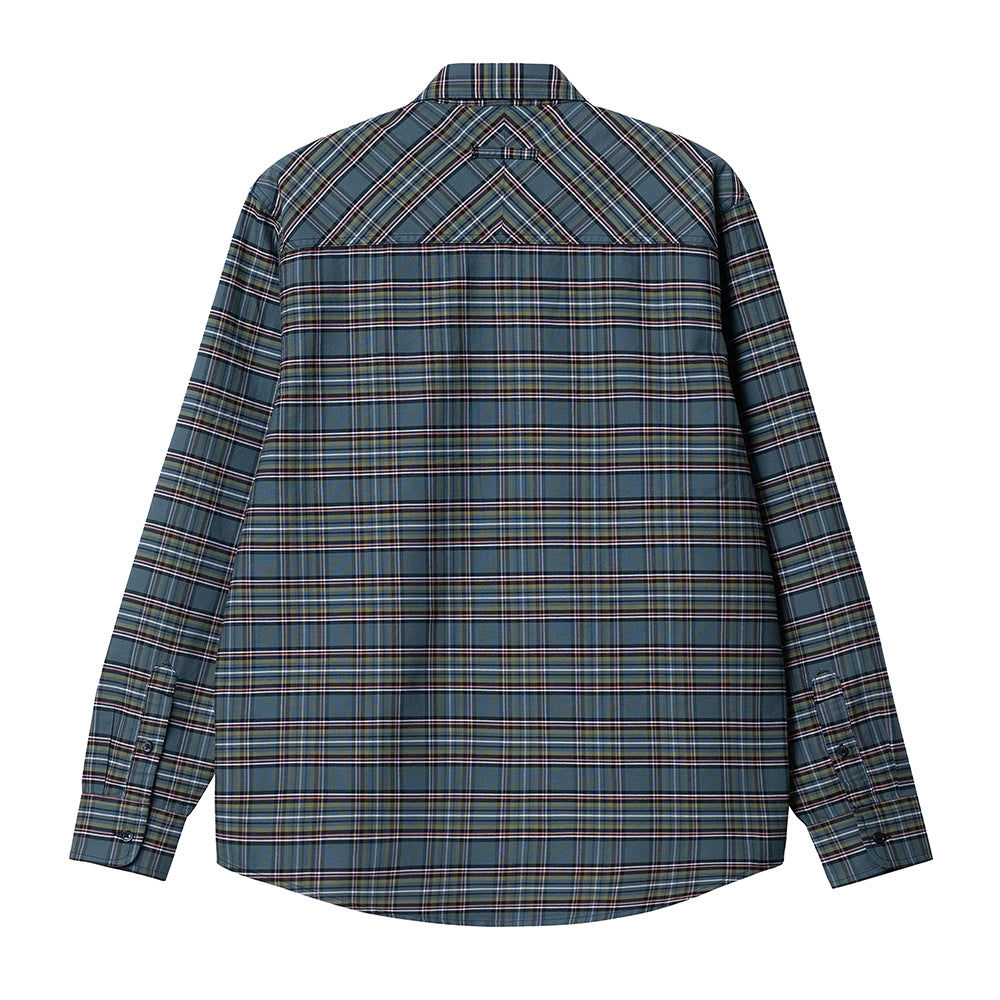 100% Cotton Oxford, 4.7 oz loose fit yarn dyed garment washed two chest pockets with button closure square label