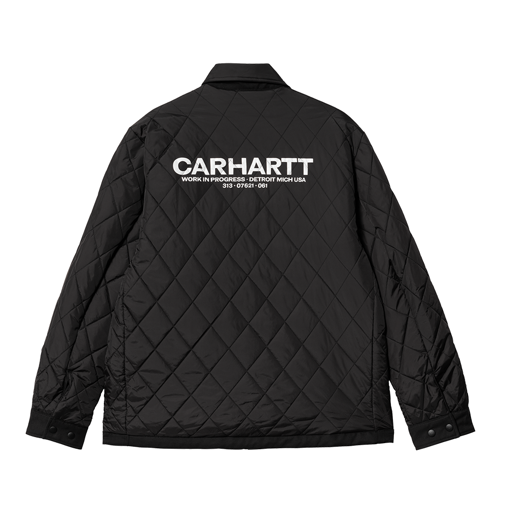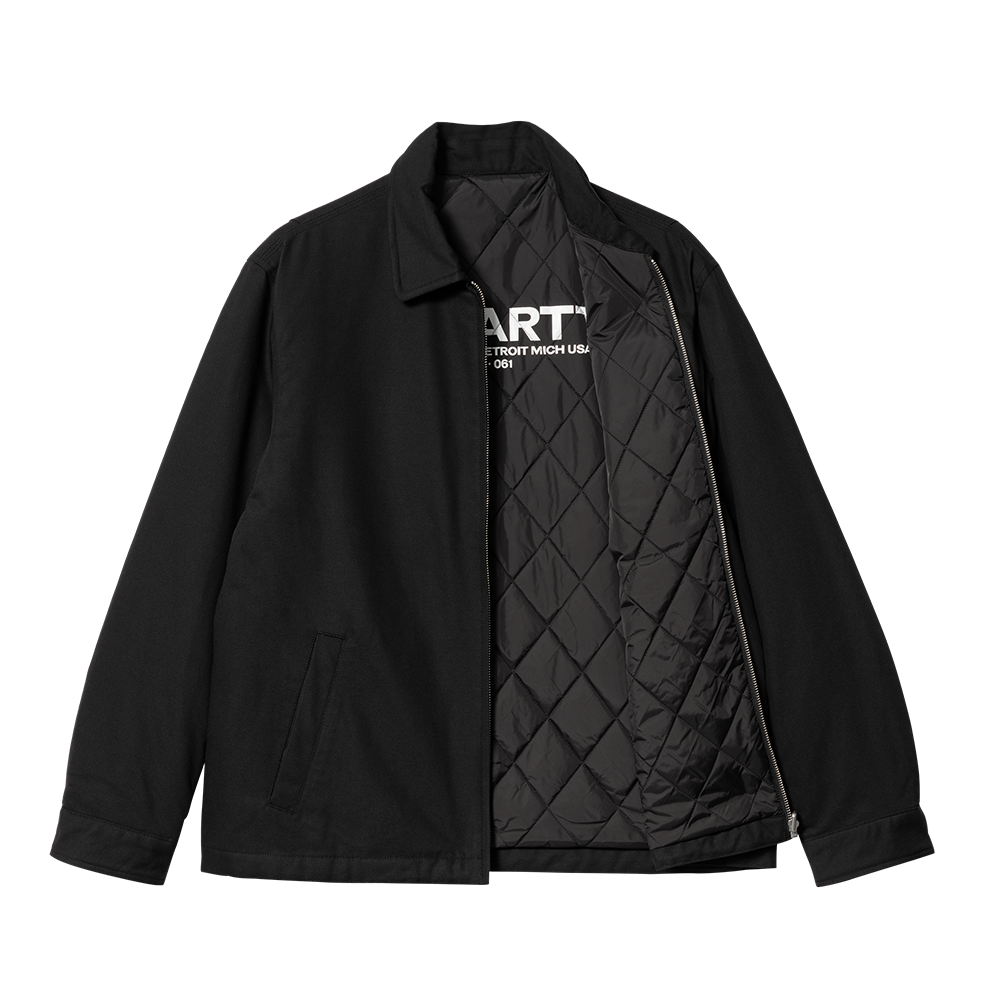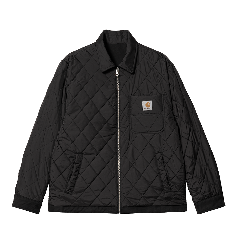 The Madera Jacket is a reversible and water-repellent style, cut from cotton and nylon on one side and diamond-quilted nylon taffeta on the reverse. On its smooth side, the style is detailed with three front pockets and a Square Label. Its quilted side is accented with a large graphic Madera Logo print on the back.