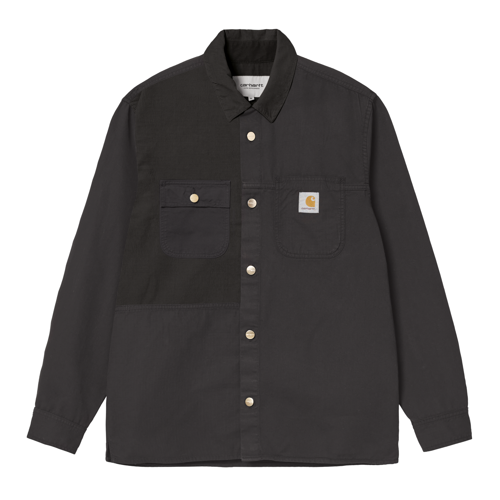100% Cotton 'Anderson' Canvas, 6.5 oz loose fit mix of our iconic fabrics two chest pockets one pocket with flap and button closure square label WIP script label