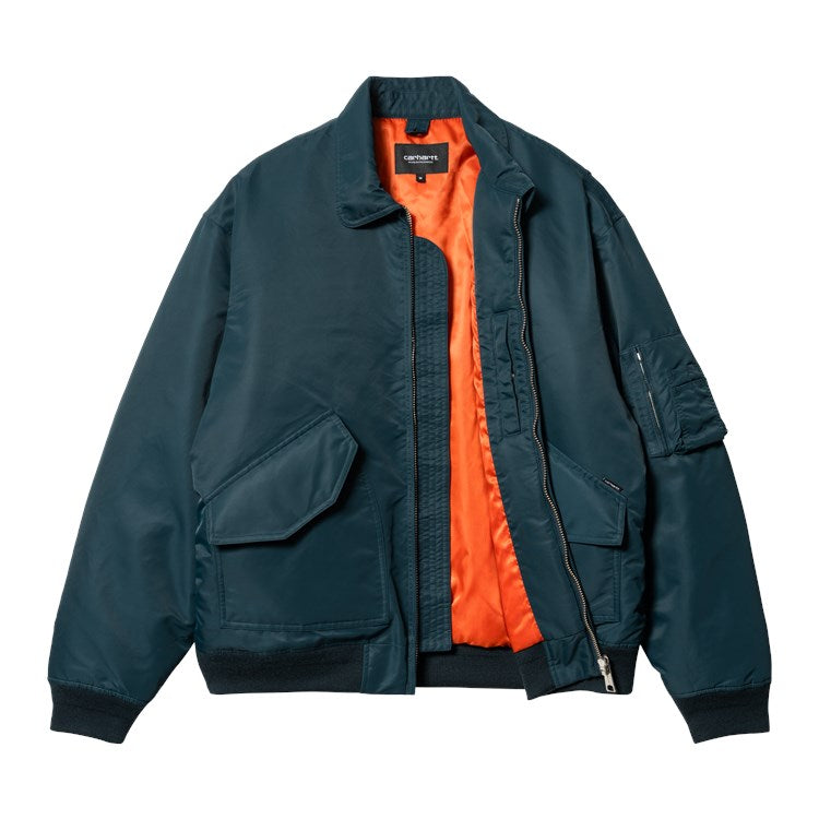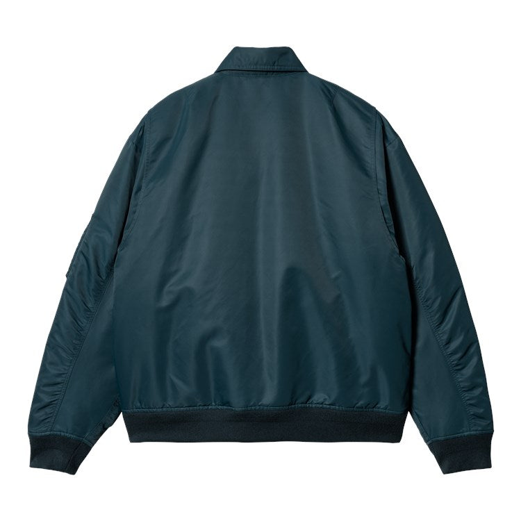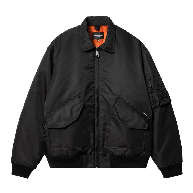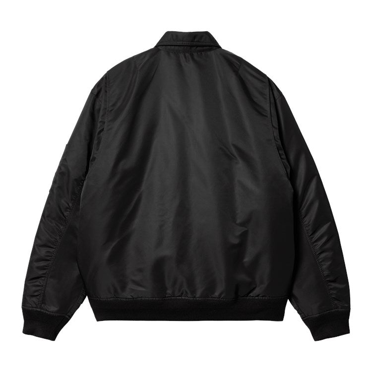 The Olten Bomber is made of water-repellent nylon twill and has a nylon taffeta lining. Its silhouette is military-inspired, based on that of the classic MA-2 bomber. A rib-knit bottom band and cuffs give the silhouette a cinching effect, while also offering additional insulation. The item is detailed with two front flap pockets, as well as a zipped pocket on the left sleeve. A woven flag label completes the design.
