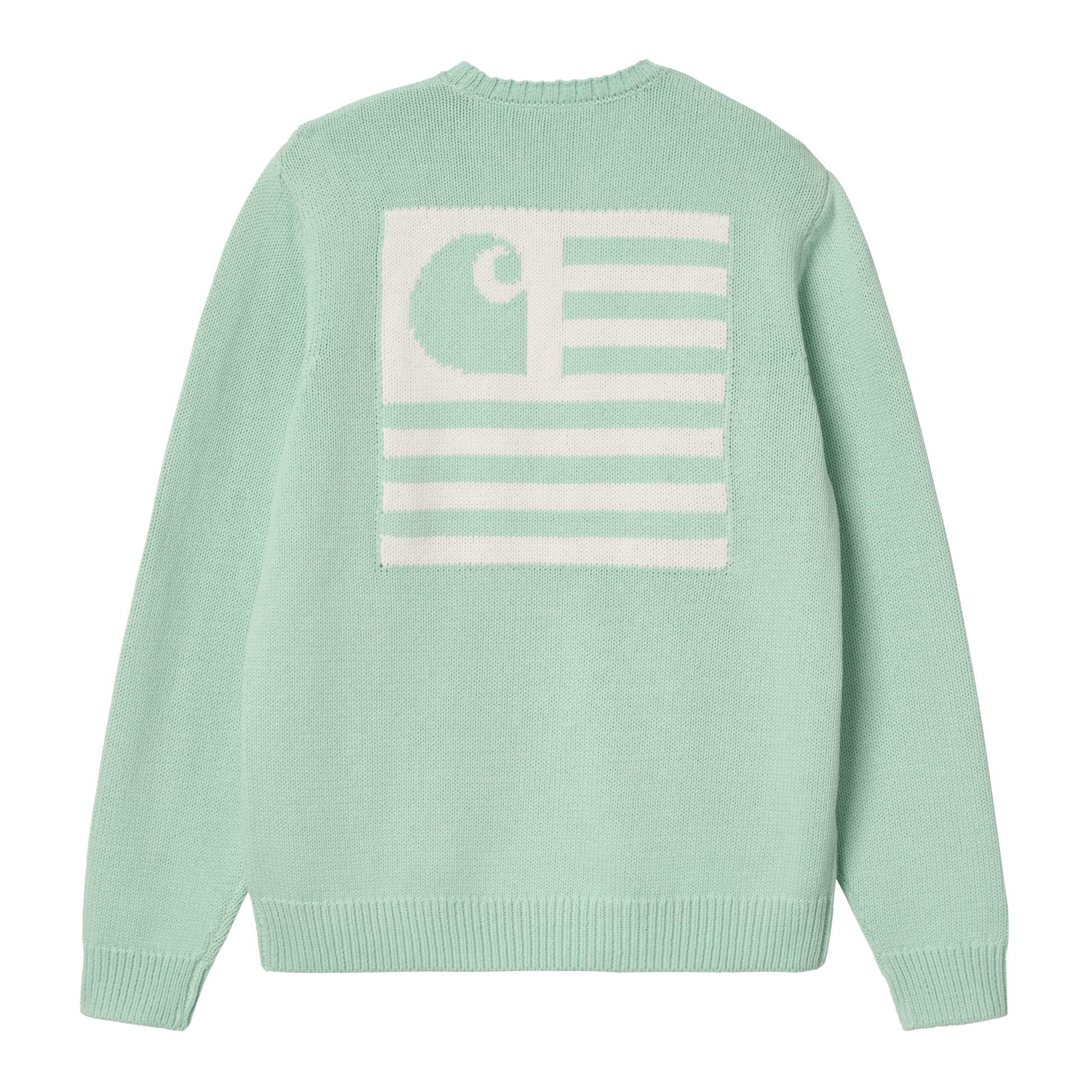 67% Cotton, 33% Acrylic, 5 gauge fully fashion knitting at armholes and neckline sports label state jacquard at back