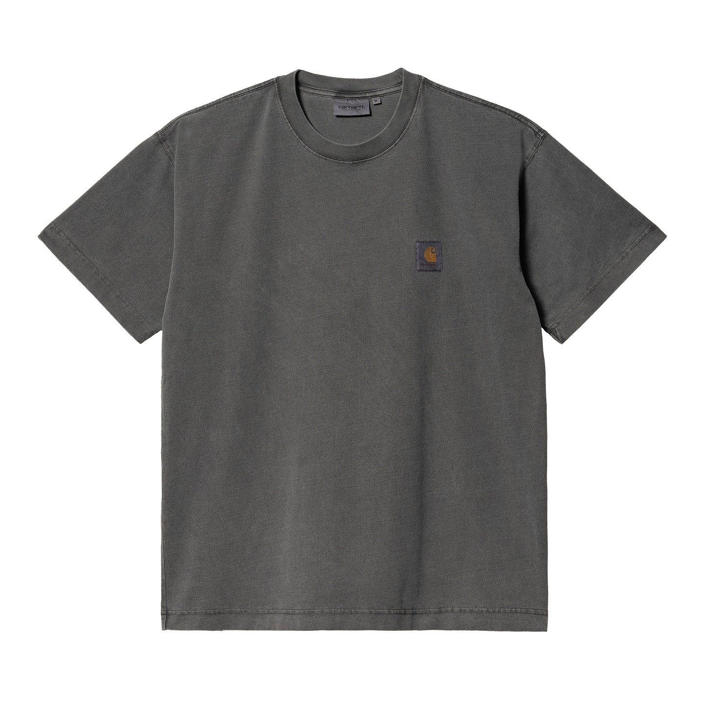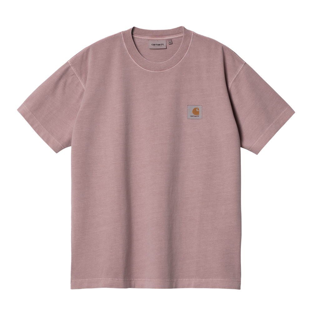 The S/S Vista T-Shirt is cut from midweight cotton jersey in a loose fit, featuring relaxed shoulders and a slightly longer hem. Additionally, the style has been garment-dyed, giving it a washed yet saturated hue. A woven Square Label, rendered murky by the garment-dyeing process, appears on the left chest.