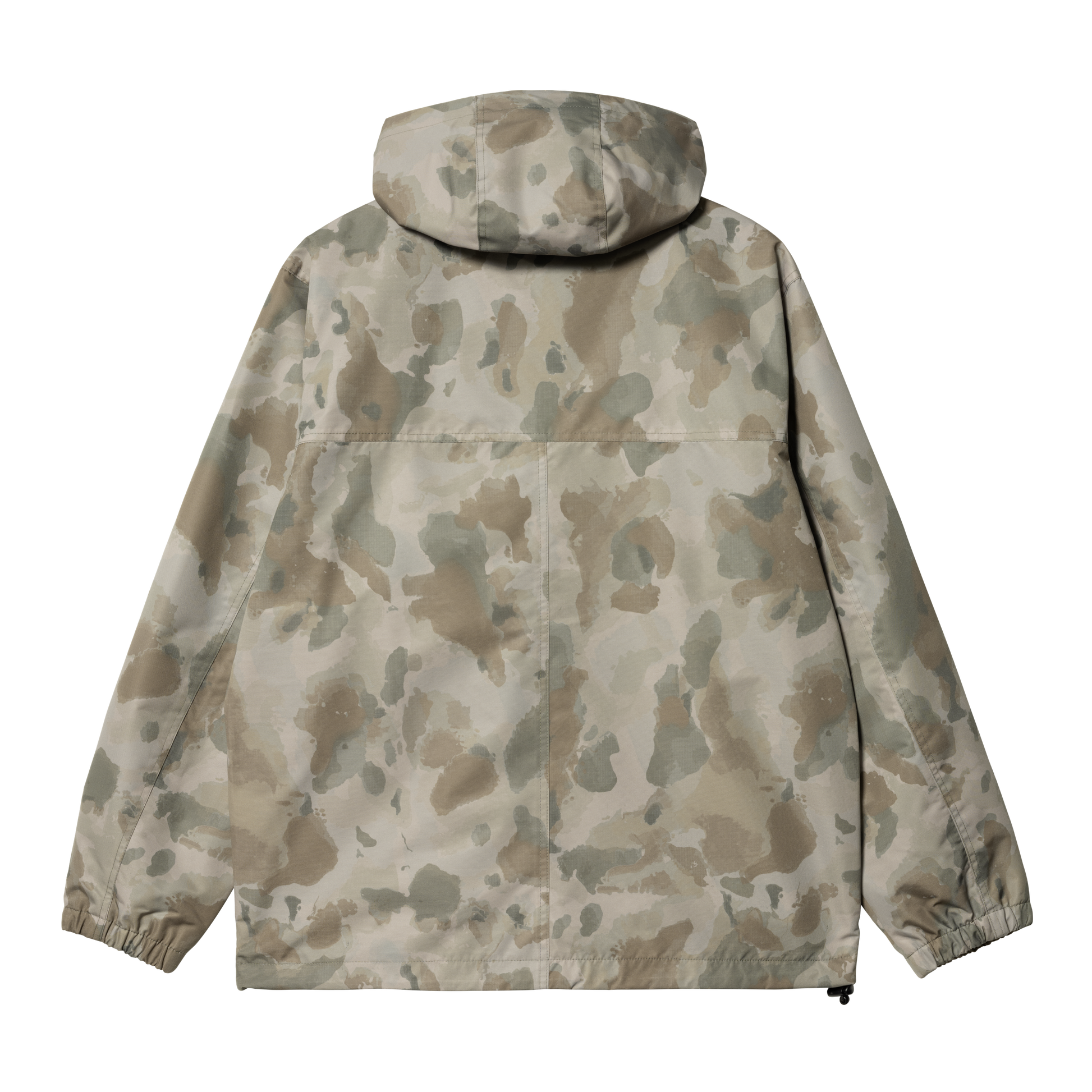 100% Polyester Plain weave, 4.7 oz water repellent fabric mesh lined adjustable hood and bottom band Front pocket with hidden zip closure two side pockets with zip closure embroidery label