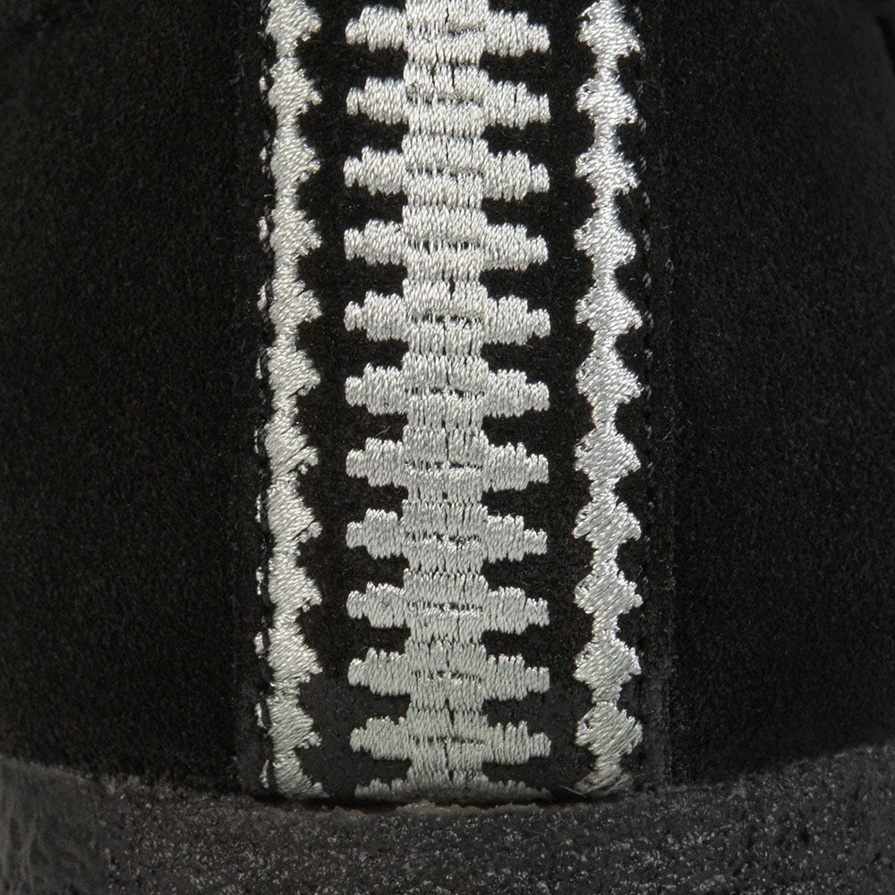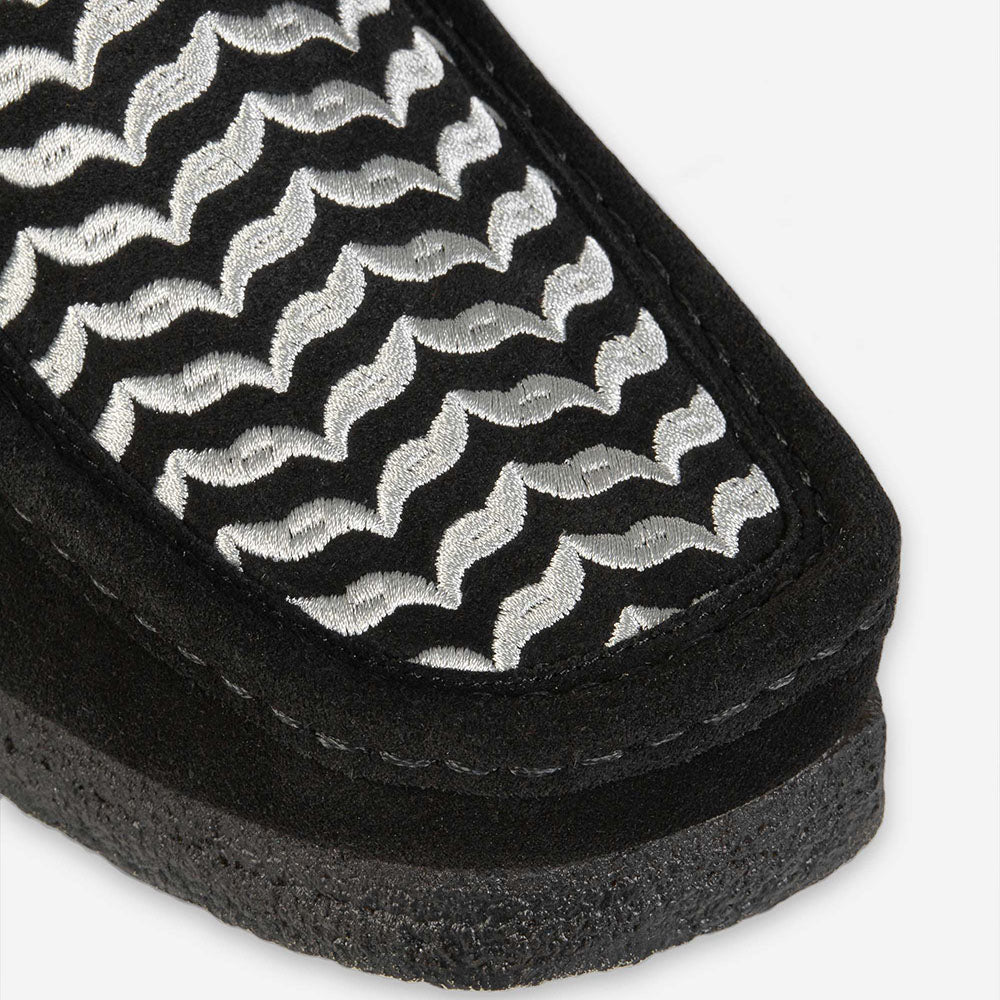 Clarks Originals x Slam Jam Wallabee Shoes Black Embroidery Slam Jam and Clarks Originals team up to rework the Wallabee’s iconic style. The first-ever collaboration between the original British brand and the Italian powerhouse draws inspiration from Slam Jam’s archive and a picture from its founder Luca Benini to Egypt decades ago. The Slam Jam x Clarks Wallabee is a set of black and white patterns and specific connection with the two-tone universe, with a subtle yet solid tribute to seminal band Madness, and their ‘Night boat to Cairo’.