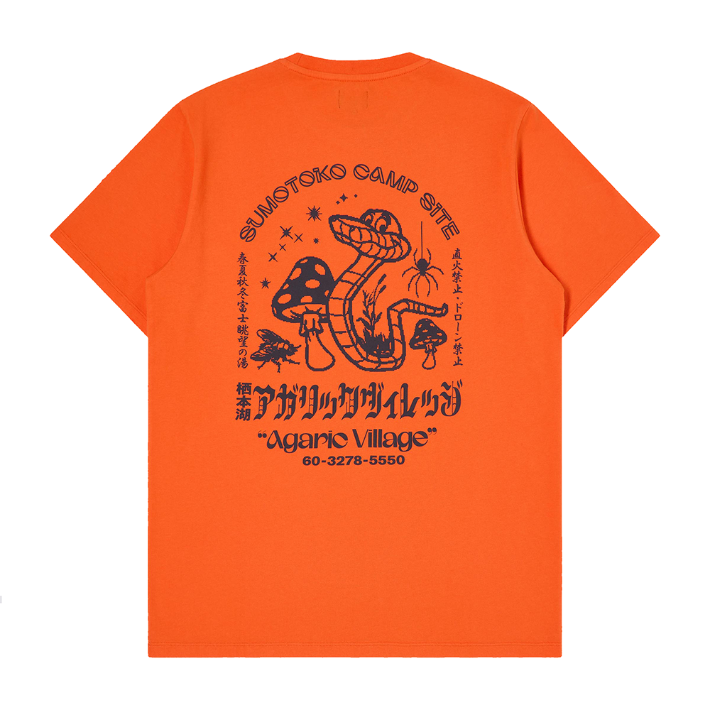 The EDWIN Agaric Village TS is a short-sleeved, regular-fit T-shirt made from 100% cotton with prints on the chest and back. 165g/m² Single Jersey 100% Cotton Regular Fit Chest and Back Prints Collar Rib