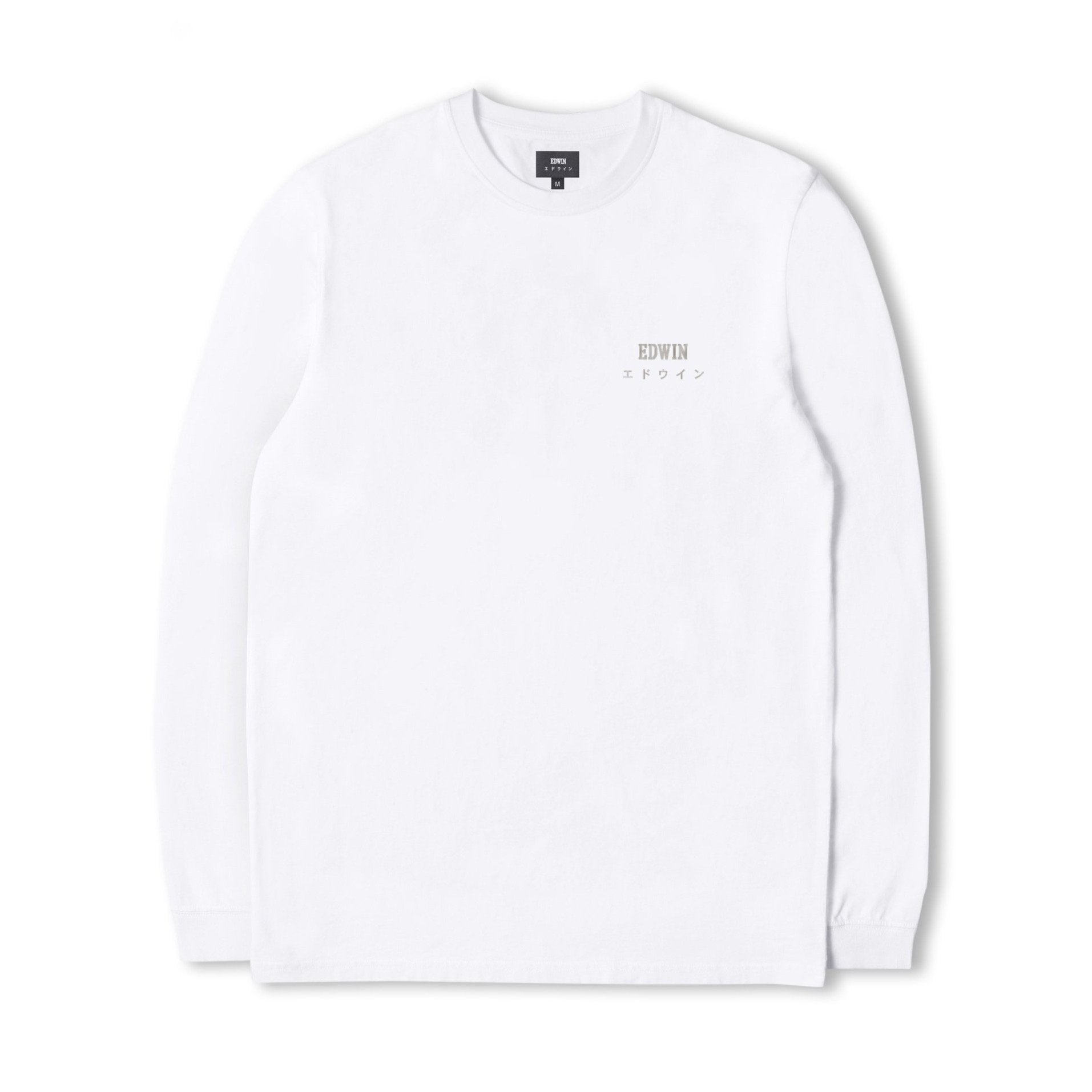 he EDWIN Logo Chest LS TS is a regular fit tee made from 100% Cotton featuring our logo simply in English and Japanese on the left-hand side of the chest.