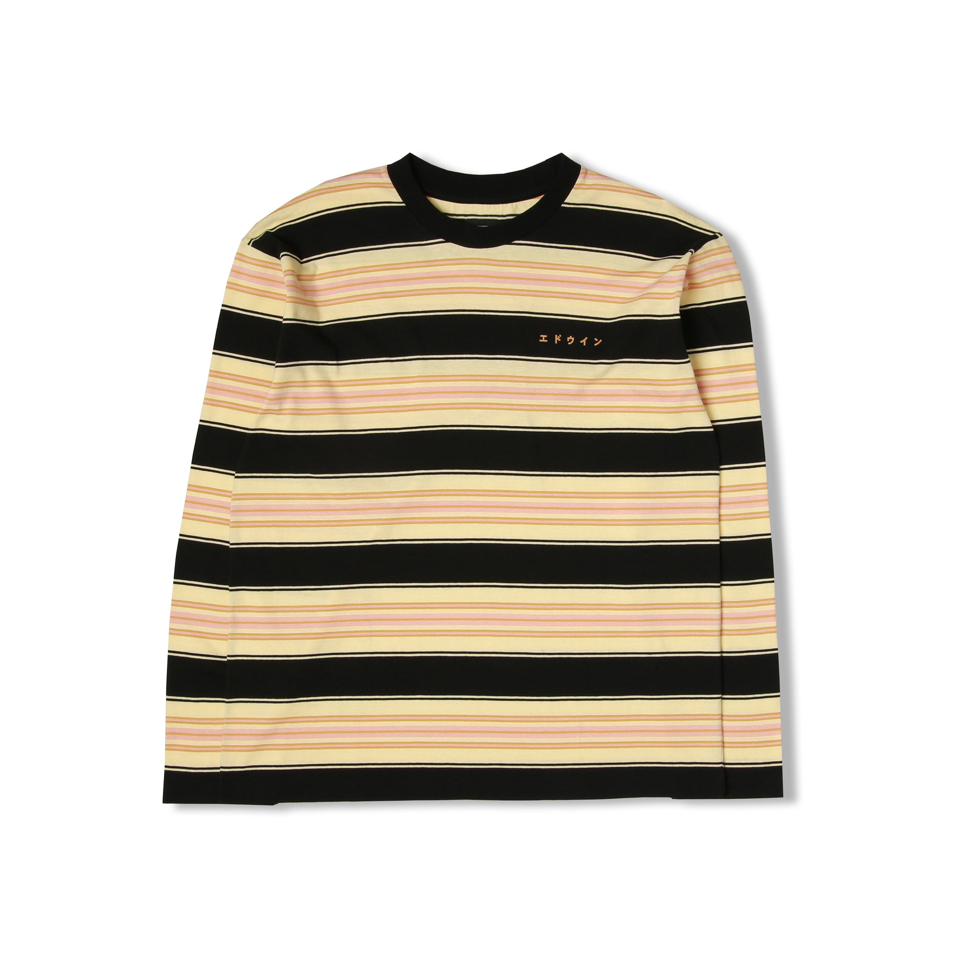 The EDWIN Quarter T-Shirt LS is a regular fitting long sleeve T-Shirt made from Single Cotton Jersey. Regular Fit Yarn Dyed Stripes Chest Print Collar Rib 170g/m² Y/D Single Cotton Jersey 100 % Cotton