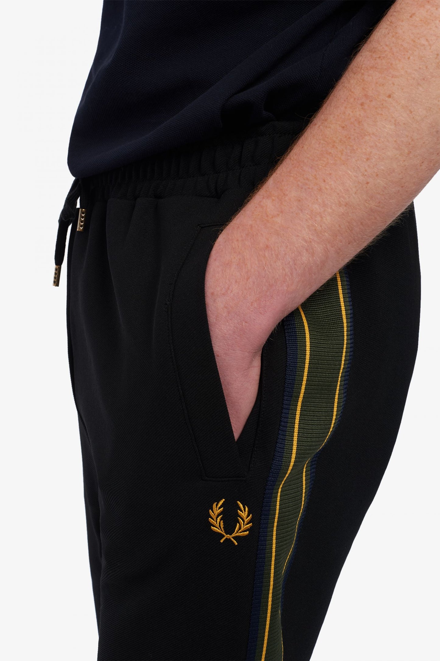 Taken from a time when contrasting colours and man-made fibres were first introduced to team kits in the ‘70s, our track pants are made in the same tricot fabric as our original track jacket. Trimmed with striped track tape at the side seams, inspired by proud club colours.