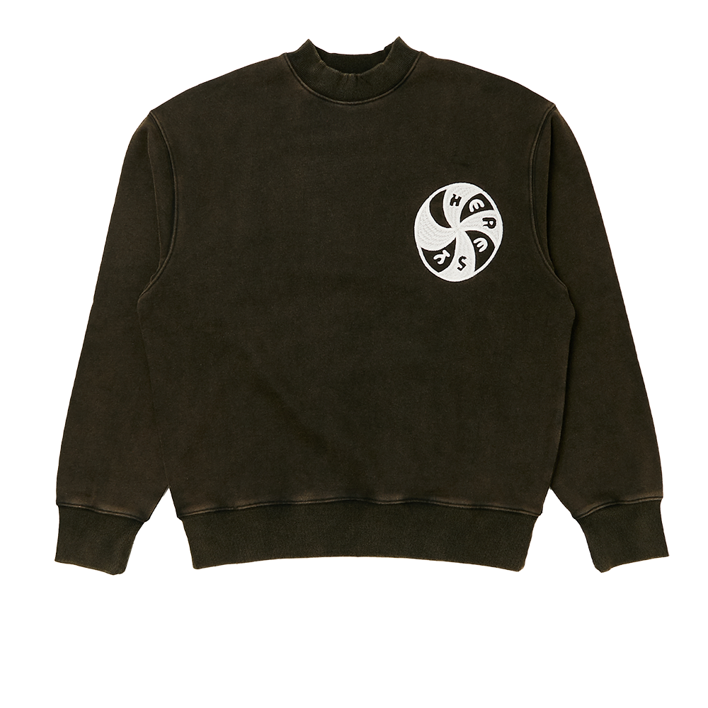 Crew neck sweatshirt in heavyweight fleece back 100% cotton jersey, featuring 'Portal' logo embroidered in white thick thread on the breast. The sweatshirt has been heavily washed to give a faded worn in effect.