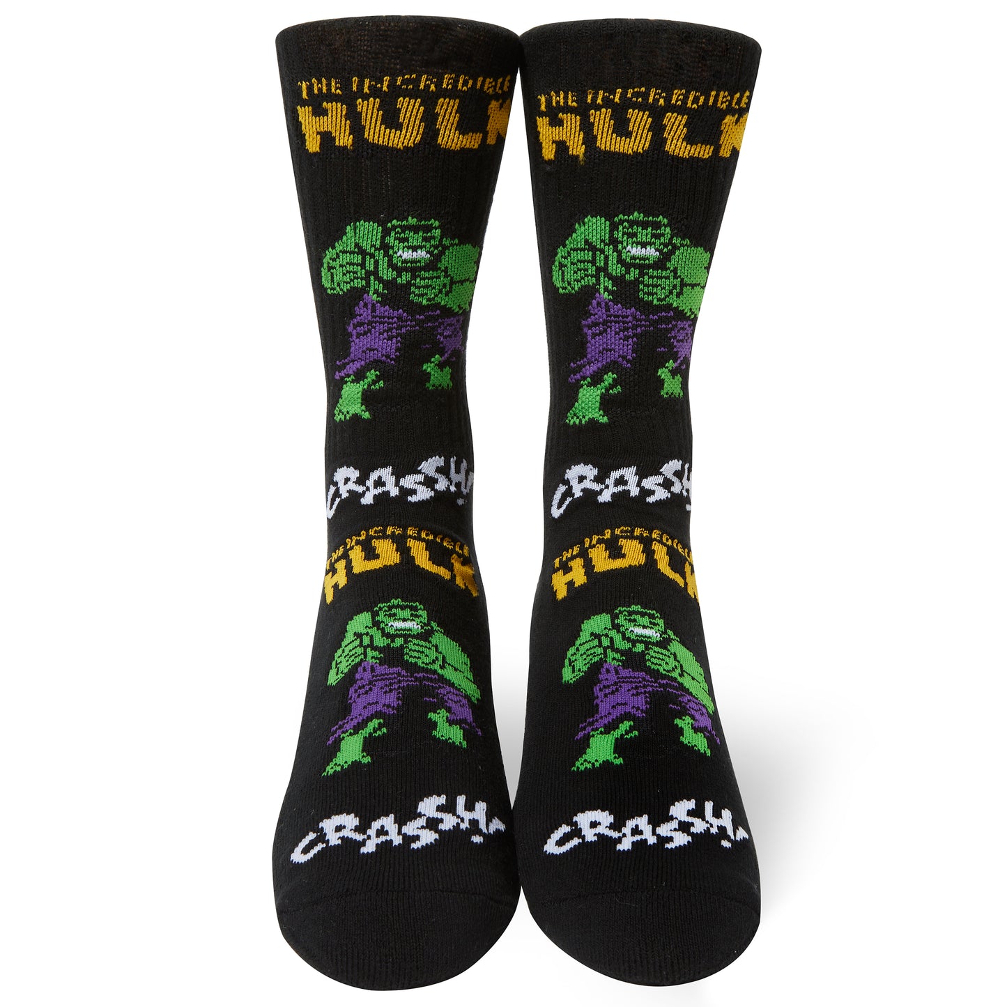 The HUF x Marvel Radiate Crew Sock is part of our Incredible Hulk 60th Anniversary capsule, in collaboration with Marvel Comics. Featuring original Hulk comic book artwork at the upper, the crew-length socks are complete with a collaborative logo lockup at the footbed. • Cotton/poly blend crew-socks • Jacquard-knit artwork • Collaborative logo lockup at cushioned footbed • Athletic ribbed upper • Reinforced heel and toe • One size fits most • HUF x Marvel Collaboration