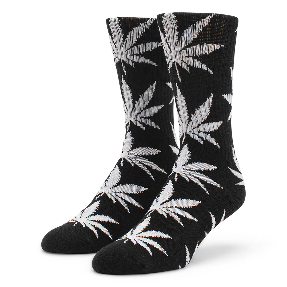 - Cotton/Poly Blend Crew Socks - Huf Plantlifeª Leaves All-Over Jacquard-Knit Pattern - One Size Fits Most