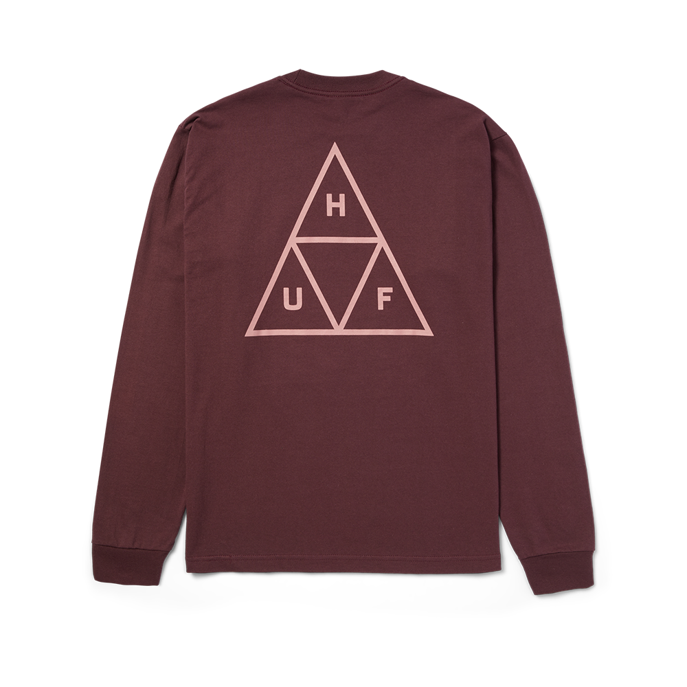 - 100% COTTON jersey, 200gsm LONG SLEEVE TEE - SCREEN-PRINTED HUF TRIPLE TRIANGLE LOGO AT FRONT AND BACK - HUF WOVEN LABEL AT INTERIOR NECK