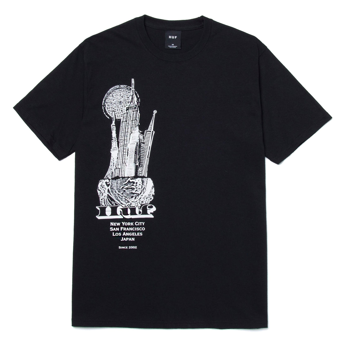 The Skyscrapers Short Sleeve Tee is made of pure cotton and features custom HUF artwork inspired by "The Benjamins" and city life in New York, San Francisco, Los Angeles, and Japan. 100% pre-shrunk cotton short sleeve tee Inspired by "The Benjamins" and city life in New York, San Francisco, Los Angeles, and Japan Printed artwork at right front HUF woven label at interior neck