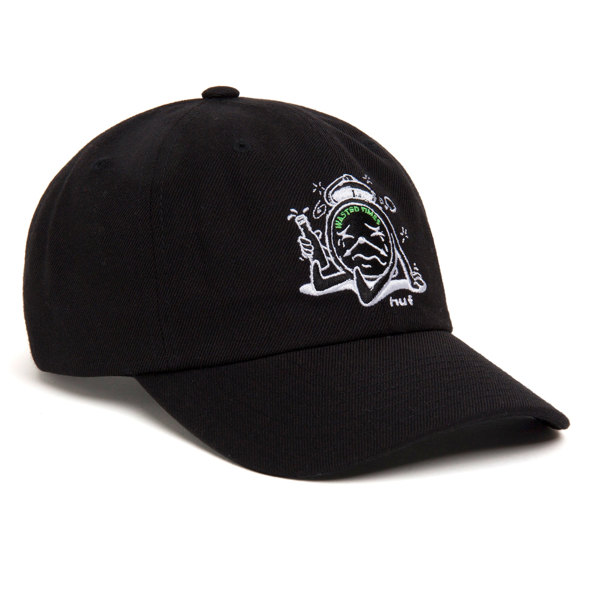 The Wasted Time 6-Panel Curved Visor Hat features custom HUF artwork embroidered at the front. Offered up on an easy-to-wear unstructured crown, the cap is complete with "Dirtbag Crew" embroidery at the adjustable velcro strap closure. - Unstructured acrylic-wool 6-panel hat - Curved visor - Direct embroidered artwork at front - Adjustable velcro strap closure w/ "Dirtbag Crew" embroidery - Embroidered eyelets for ventilation