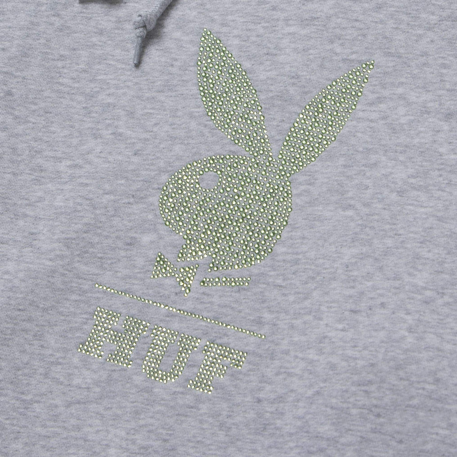 The Playboy Rhinestone Pullover Hoodie is part of our HUF x Playboy "After Hours" collection—inspired by the glitz, glamour, jetsetters, and all-nighters of the legendary Playboy Clubs. Made of premium heavyweight fleece, the hoodie features Playboy's iconic bow-tied Rabbit Head logo in rhinestones at the front for a blinged-out look. Pullover hoodie 80/20 cotton-poly 330gsm fleece Rhinestone artwork at center chest Spacious double-layer hood with round drawcord Kangaroo handwarmer pocket 1x1 ribbing at cuff and hem HUF x Playboy woven label at interior neck HUF x Playboy "After Hours" Collaboration
