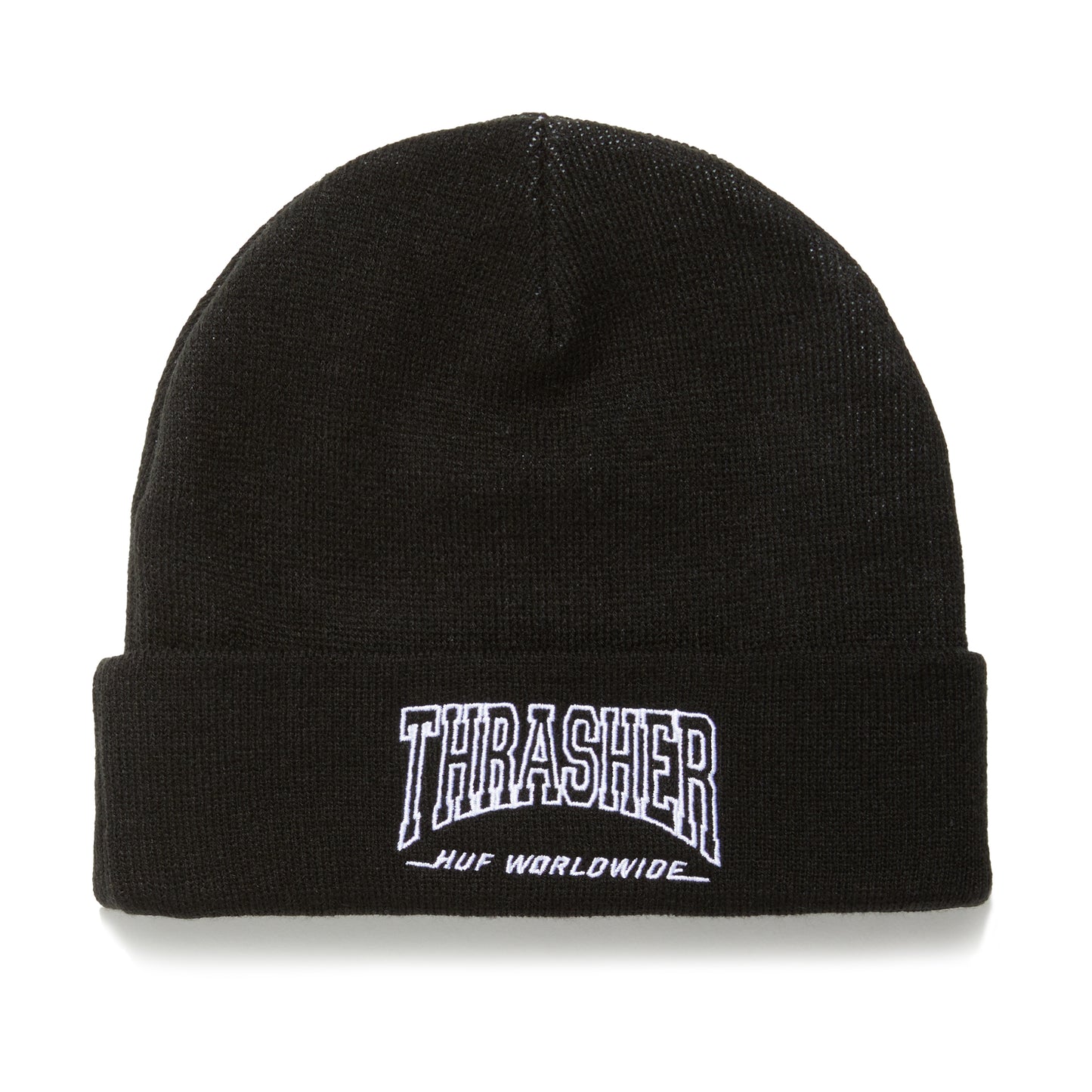 The HUF x Thrasher Field Crew Beanie is part of our latest collaboration with Thrasher Magazine. Offered up in a classic fold-over watch cap fit, the beanie features collaborative HUF & Thrasher artwork at the front cuff and back. • 100% acrylic cuff beanie • Embroidered artwork at front cuff • Jacquard artwork with embroidered detail at back • 10.5" tall, 8" tall folded • HUF x Thrasher Collaboration