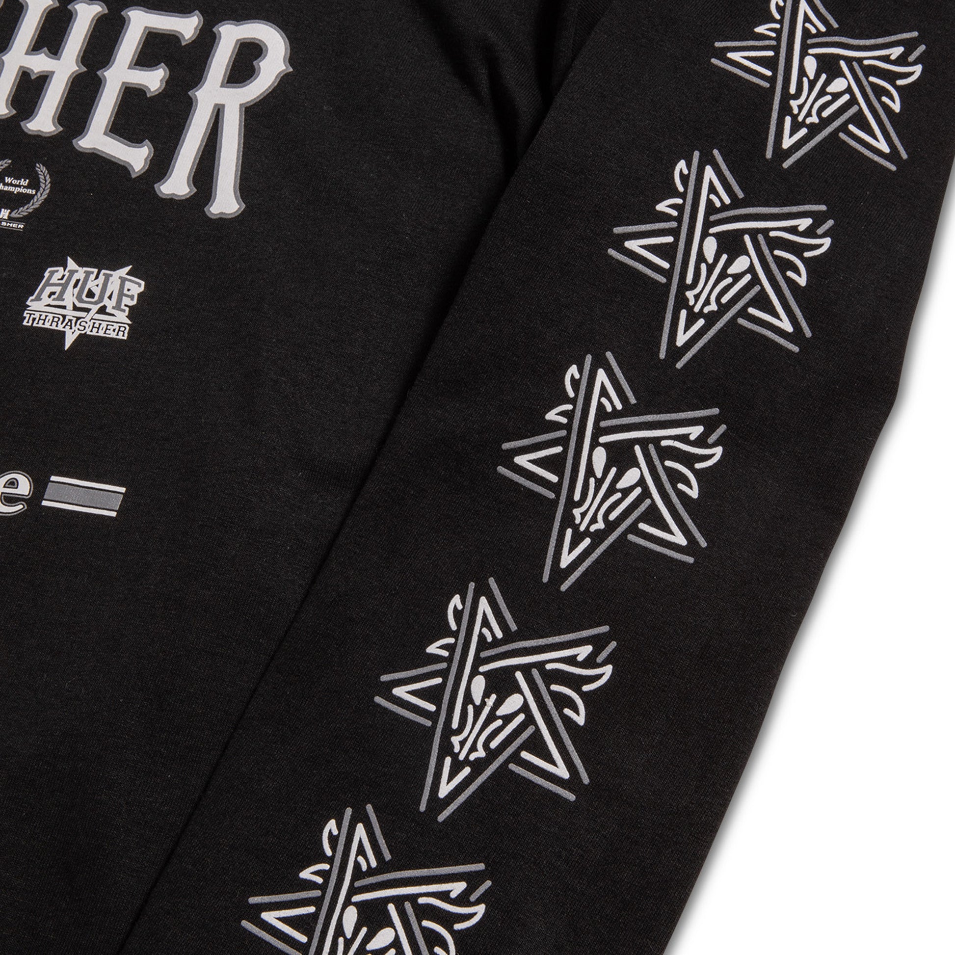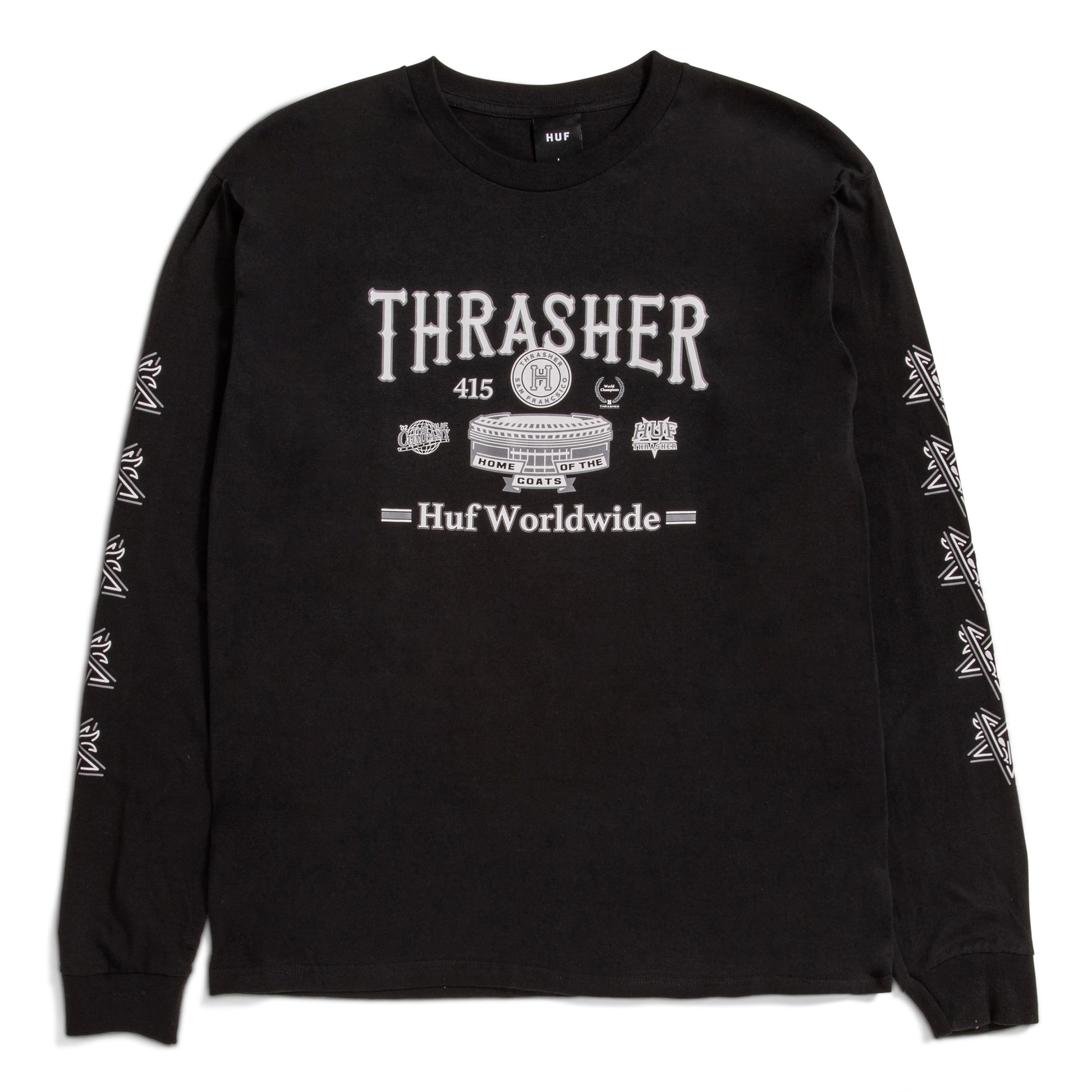 The HUF x Thrasher Monteray Long Sleeve Tee is part of our latest collaboration with Thrasher Magazine. Made of pure cotton, the shirt features Bay Area sports-inspired HUF & Thrasher artwork printed at the front and both sleeves. • 100% pre-shrunk cotton long sleeve tee • Printed artwork at front and both sleeves • HUF woven label at interior neck • HUF x Thrasher Collaboration