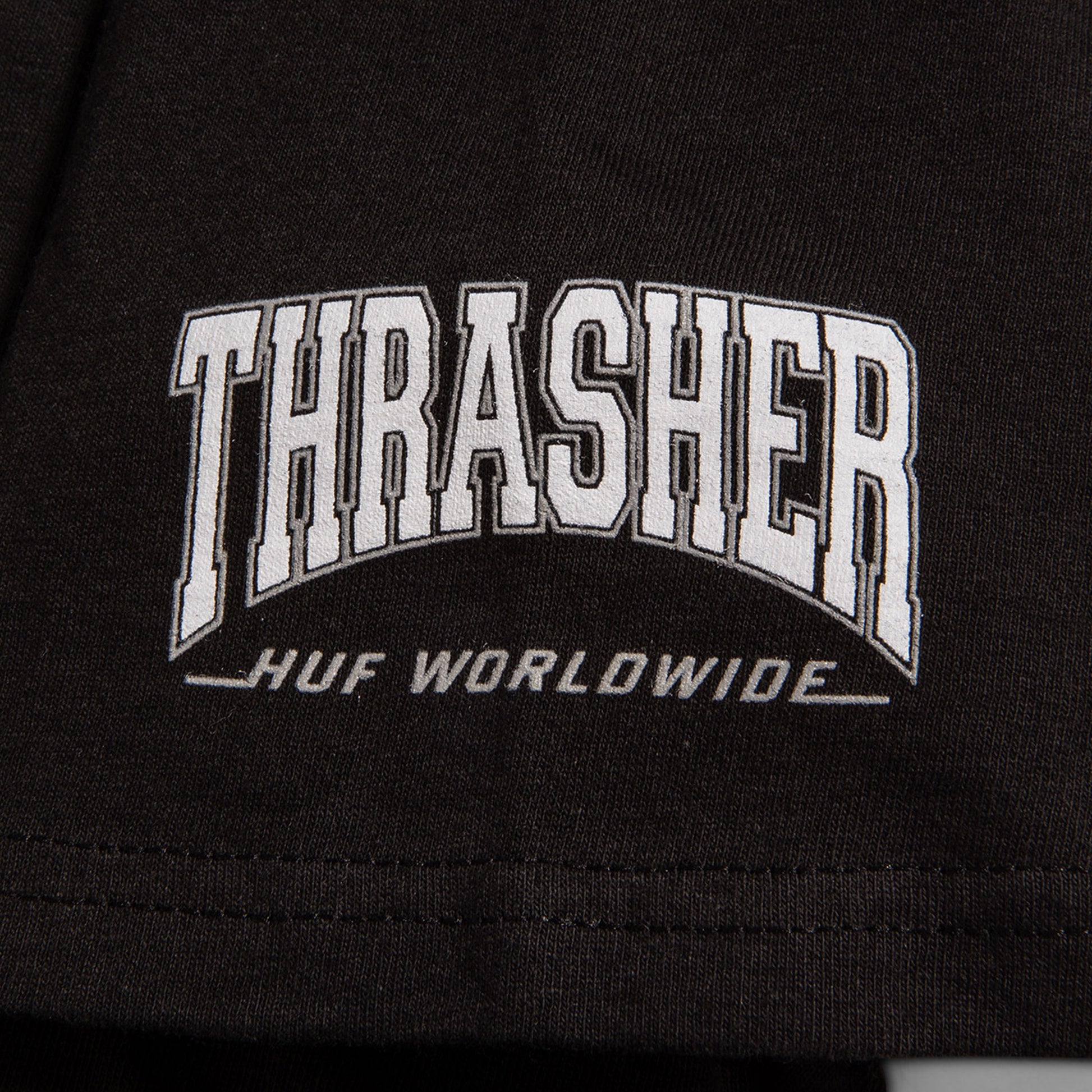 The HUF x Thrasher Sunnydale Short Sleeve Tee is part of our latest collaboration with Thrasher Magazine. Made of pure cotton, the tee features collaborative HUF & Thrasher artwork printed at the chest and left sleeve. • 100% pre-shrunk cotton short sleeve tee • Printed artwork at center chest and left sleeve • HUF woven label at interior neck • HUF x Thrasher Collaboration