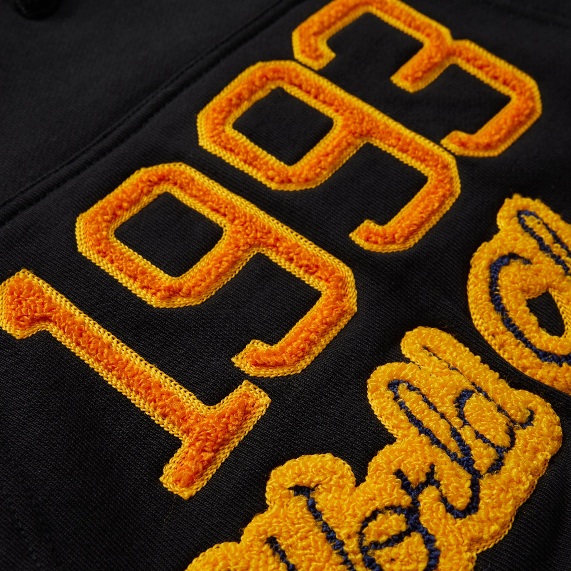 This thing is wild! We wanted to bring the energy of a sports-varsity jacket onto a hoodie and the team nailed it. All over chenille patch artwork 100% Cotton 400 GSM Heavyweight hoodie