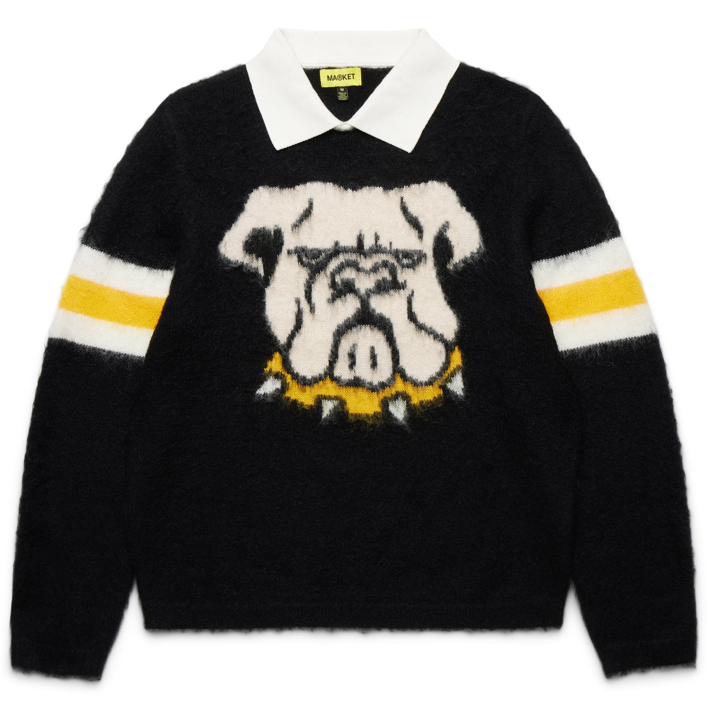 All the style of a rugby as a knit sweater. Yeah, you need this one for sure. Plus, who doesn't love dogs? Serial killer behavior. Fuzzy knit sweater Stoops comfy