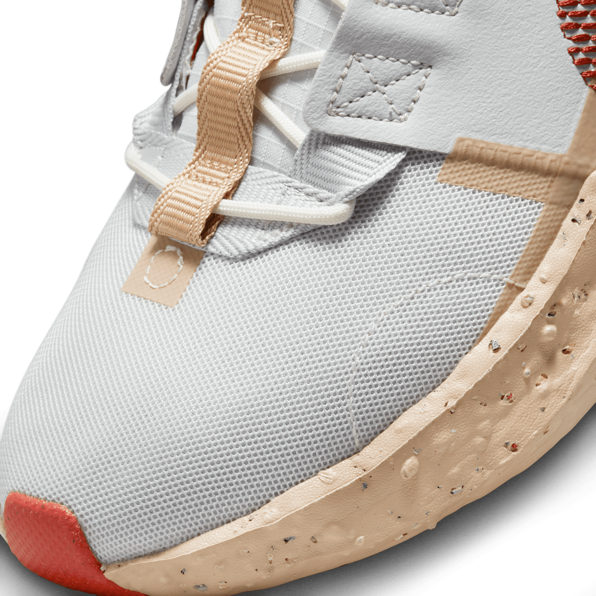 Nike Crater Impact is part of our sustainability journey to transform trash into shoes that tread a little lighter. We made unique design choices that reduce waste when compared with traditional methods—like the embroidered Swoosh, efficient overlays and namesake Crater Foam midsole. Benefits Athletics-inspired silhouette features sleek angles and a padded, low-cut collar for comfort. Mesh on the upper keeps it airy and lightweight. Lifted Crater Foam midsole adds stability and a fun speckled aesthetic. Rubber outsole with Nike Grind gives you traction and durability. Product Details Embroidered Swoosh design Colour Shown: Ash Green/Aviator Grey/White/Volt Style: DJ6308-002