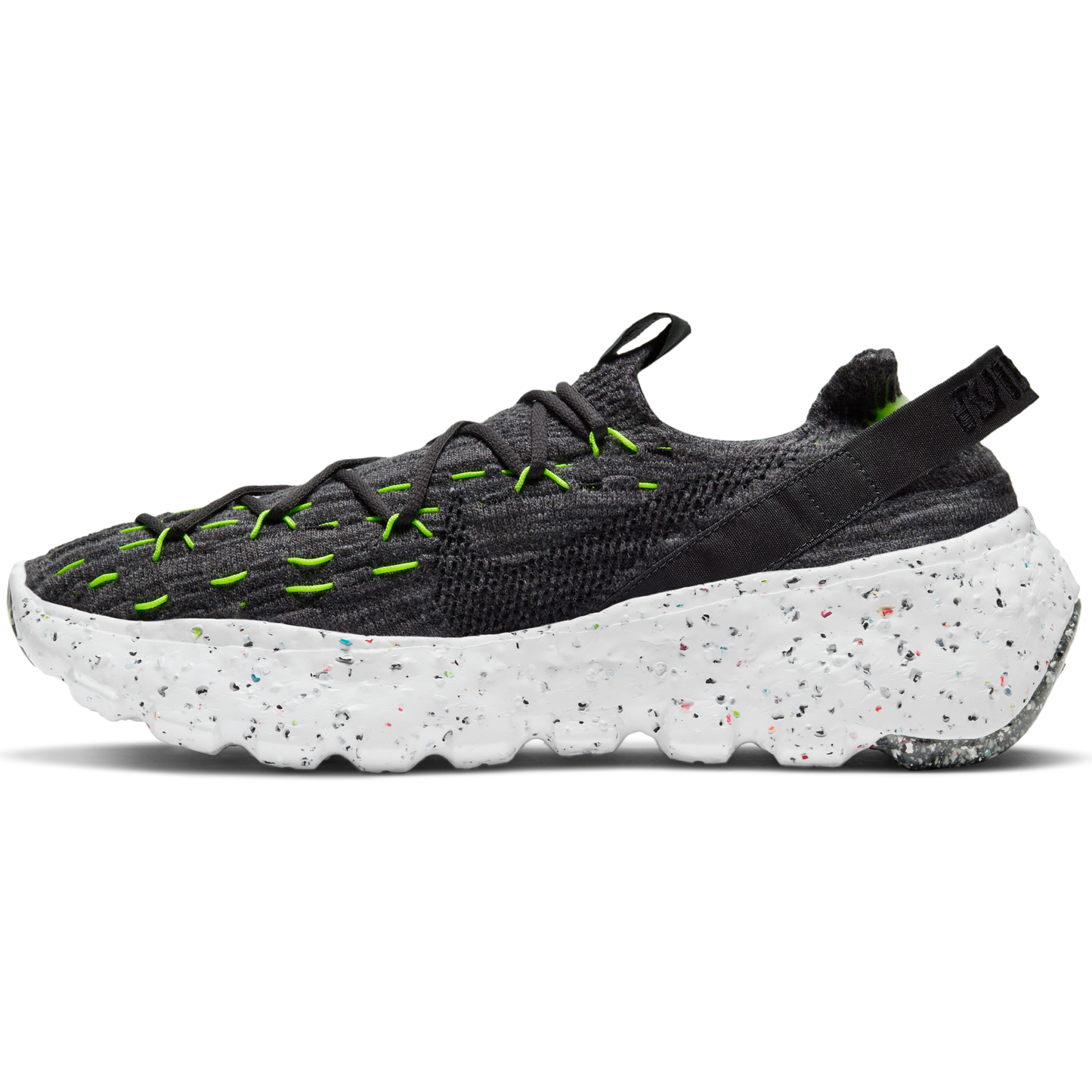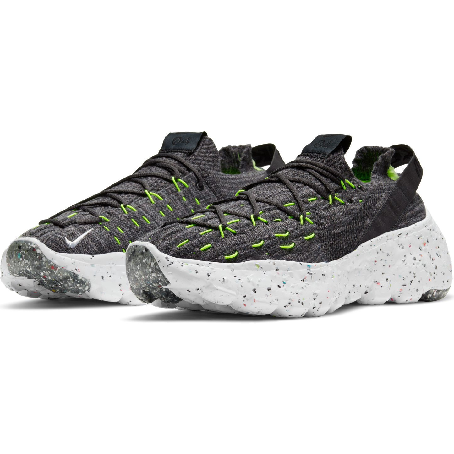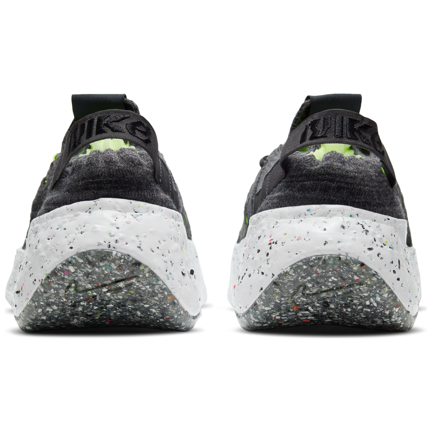 Space Hippie is a story of trash transformed. From the upper to the outsole, at least 25% of the Space Hippie 04 is made from recycled material, by weight. Not only is it the most lightweight silhouette within the collection, it also has the lowest carbon footprint. Its 'Space Waste Yarn' upper includes about 75% recycled content, by weight, made from recycled plastic bottles, T-Shirts and yarn scraps. A soft, Crater Foam midsole combines Nike grind with a blend of foams for stability and a unique aesthetic.