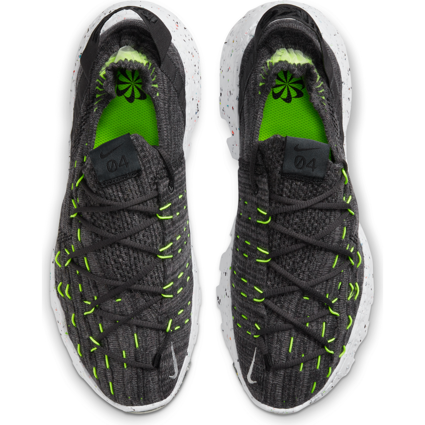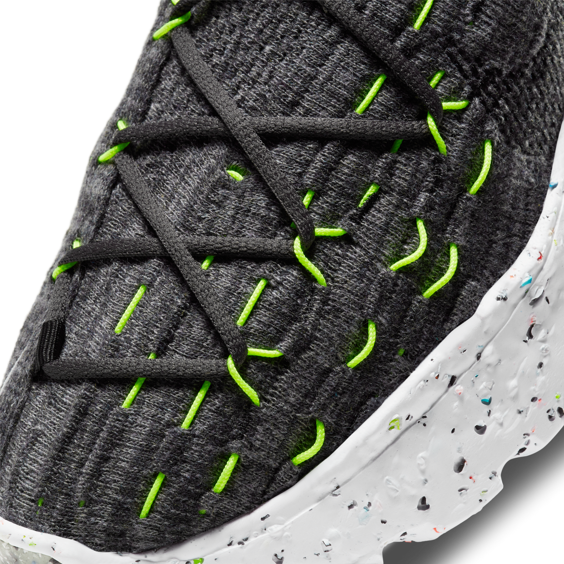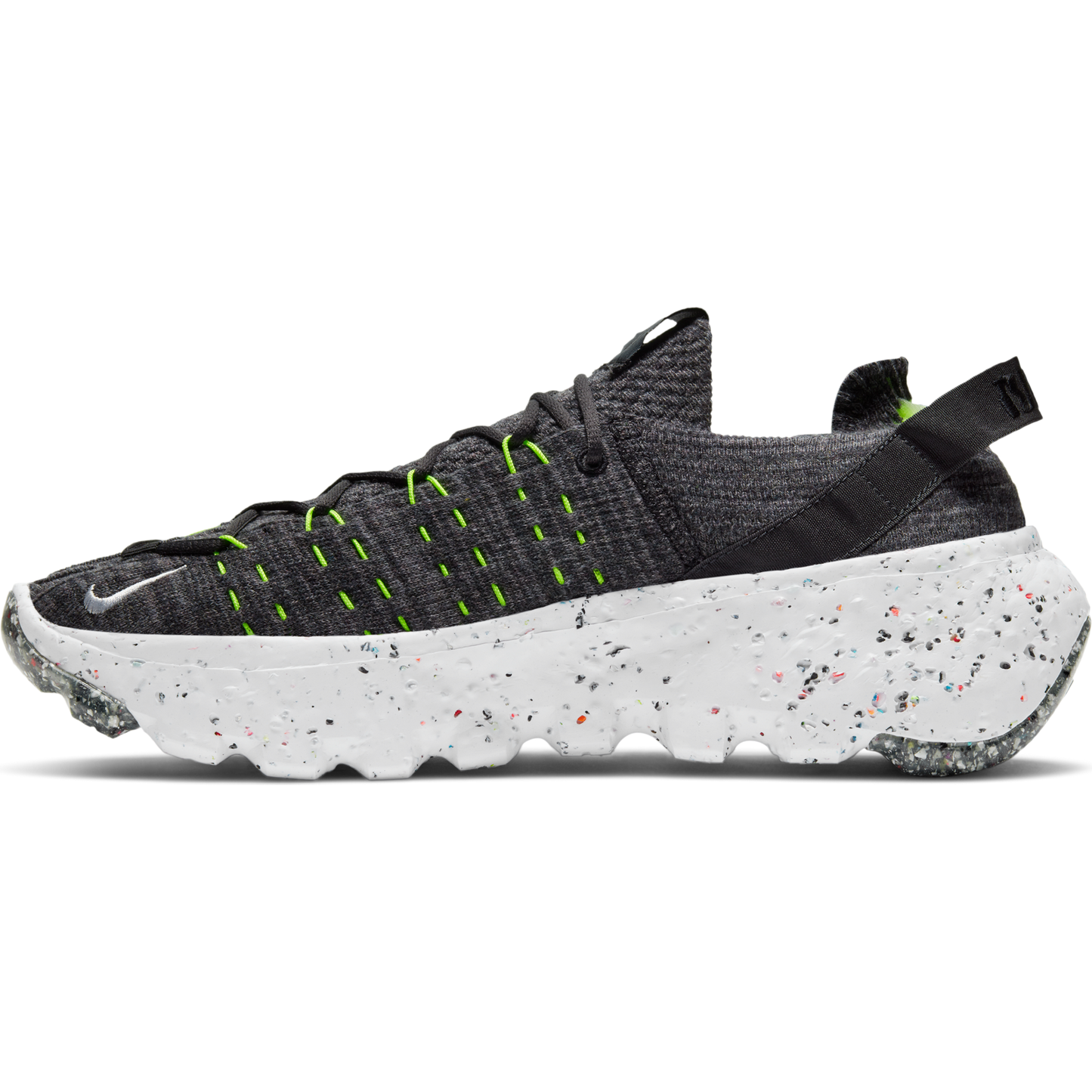 Space Hippie is a story of trash transformed. From the upper to the outsole, at least 25% of the Space Hippie 04 is made from recycled material, by weight. Not only is it the most lightweight silhouette within the collection, it also has the lowest carbon footprint. Its 'Space Waste Yarn' upper includes about 75% recycled content, by weight, made from recycled plastic bottles, T-Shirts and yarn scraps. A soft, Crater Foam midsole combines Nike grind with a blend of foams for stability and a unique aesthetic.