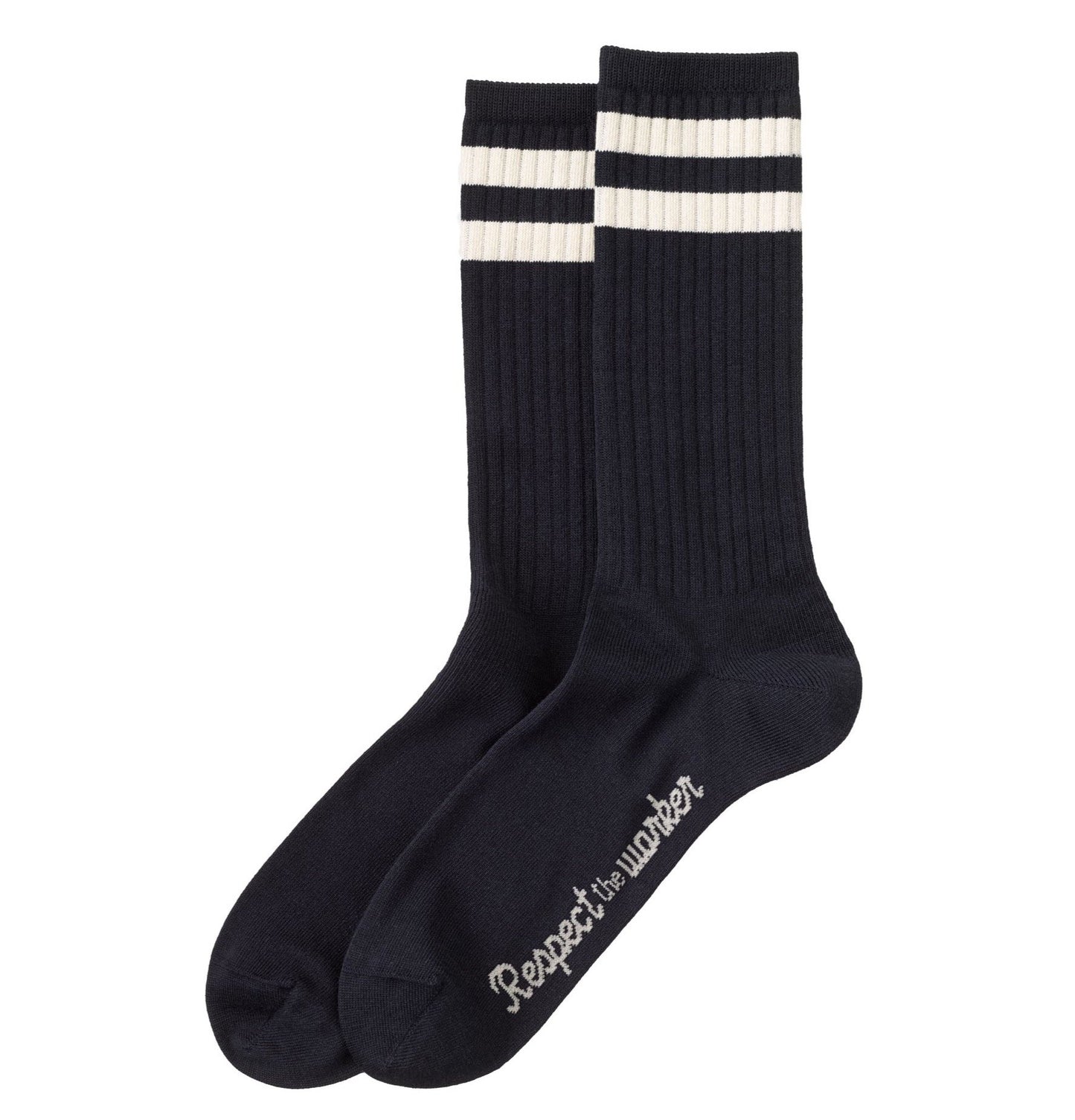 RTW - Respect The Worker. The embroidery on the sole of this mid-cut sock is the essence of our strive to provide a safe, fair, and ethical working environment for everyone involved in manufacturing our garments. The sock itself is, of course, made with organic cotton.