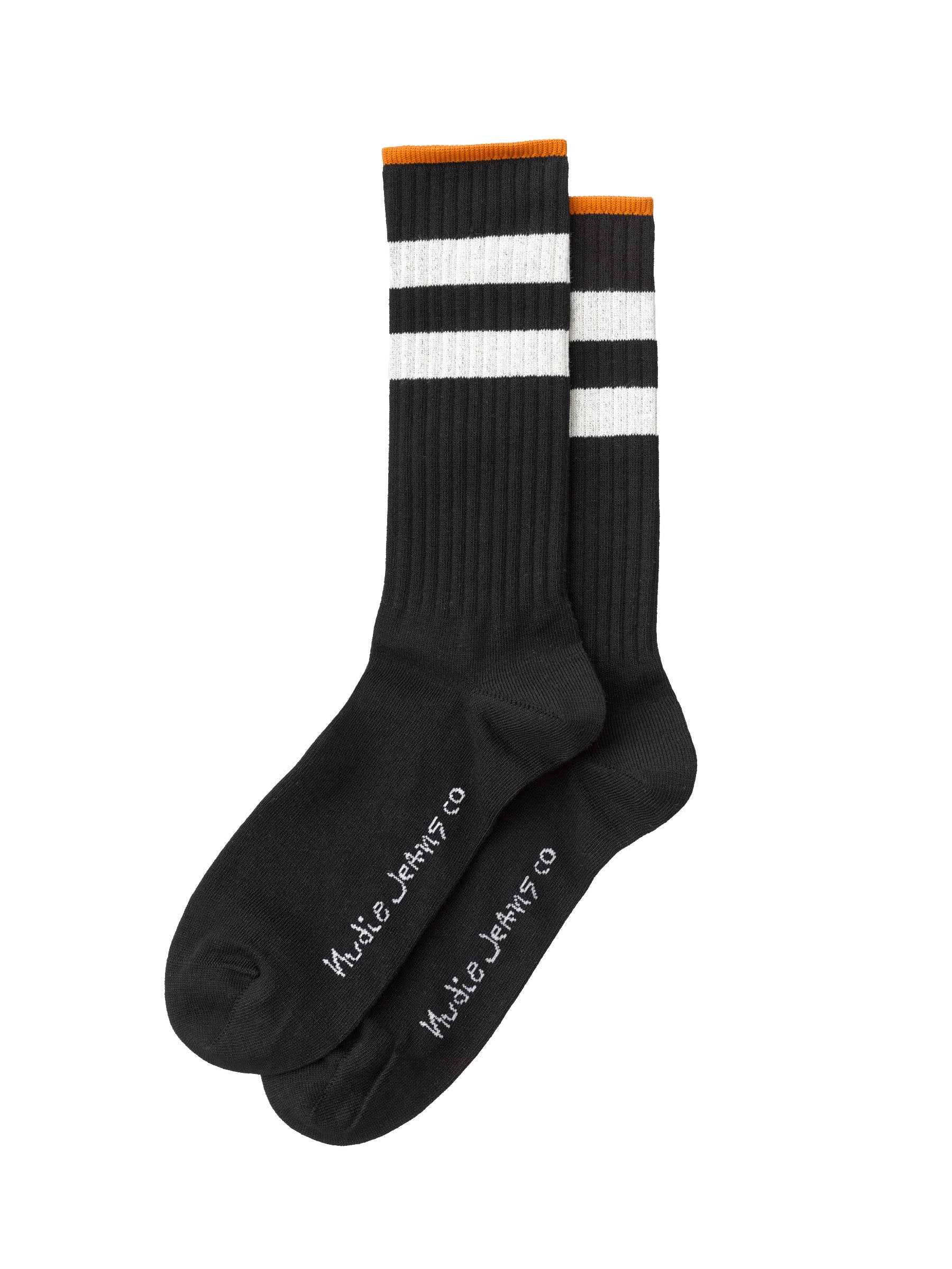 Nudie Jeans Co is not famous for sportswear, but here we make an attempt to claim a part of the market. So sneak in some sport in your life with these smart, striped socks made with organic cotton.